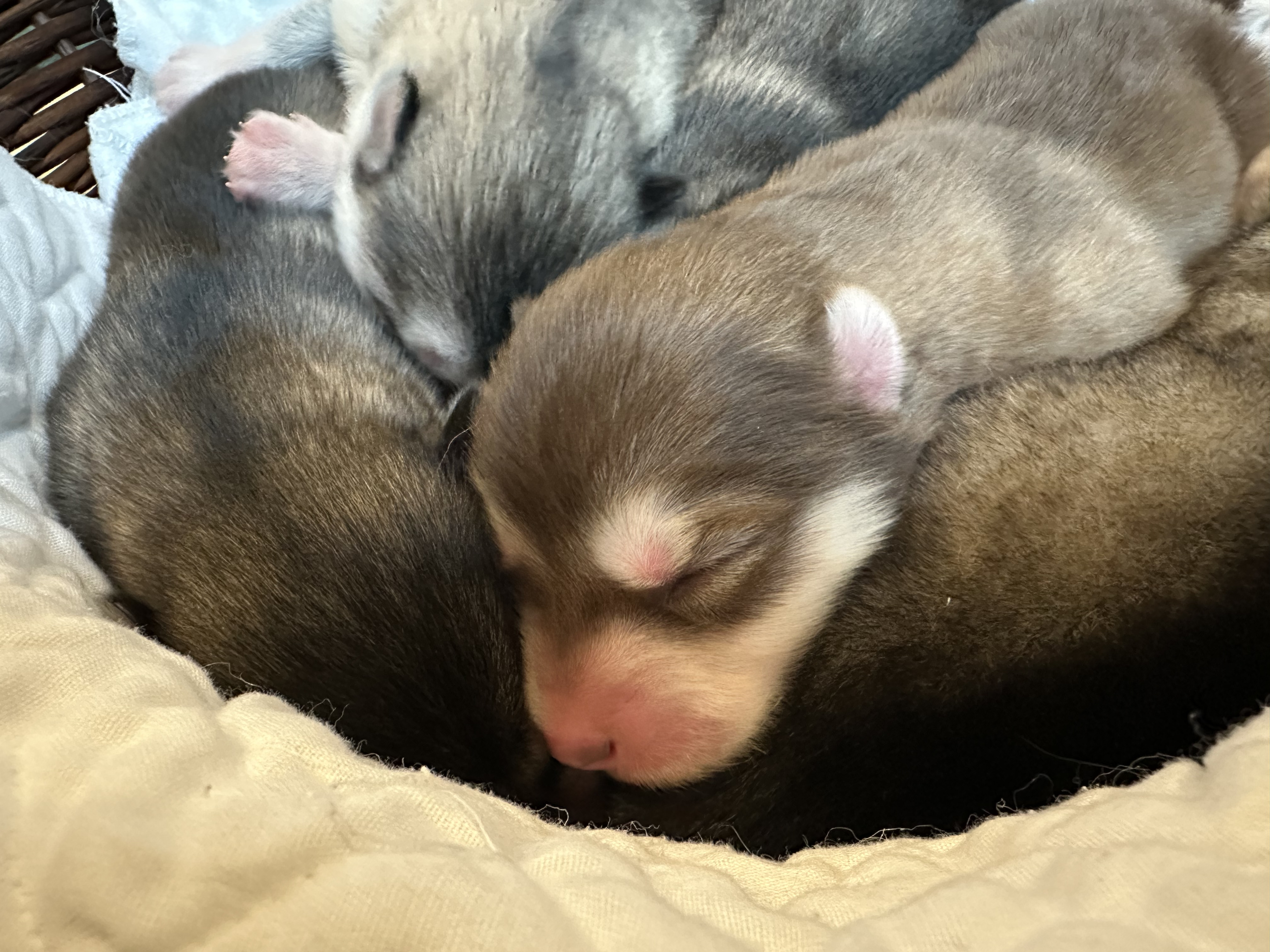 The puppies are growing very quickly. They are more alert and are starting to open their eyes. Building strength, they are also more mobile when not sleeping in the pile.