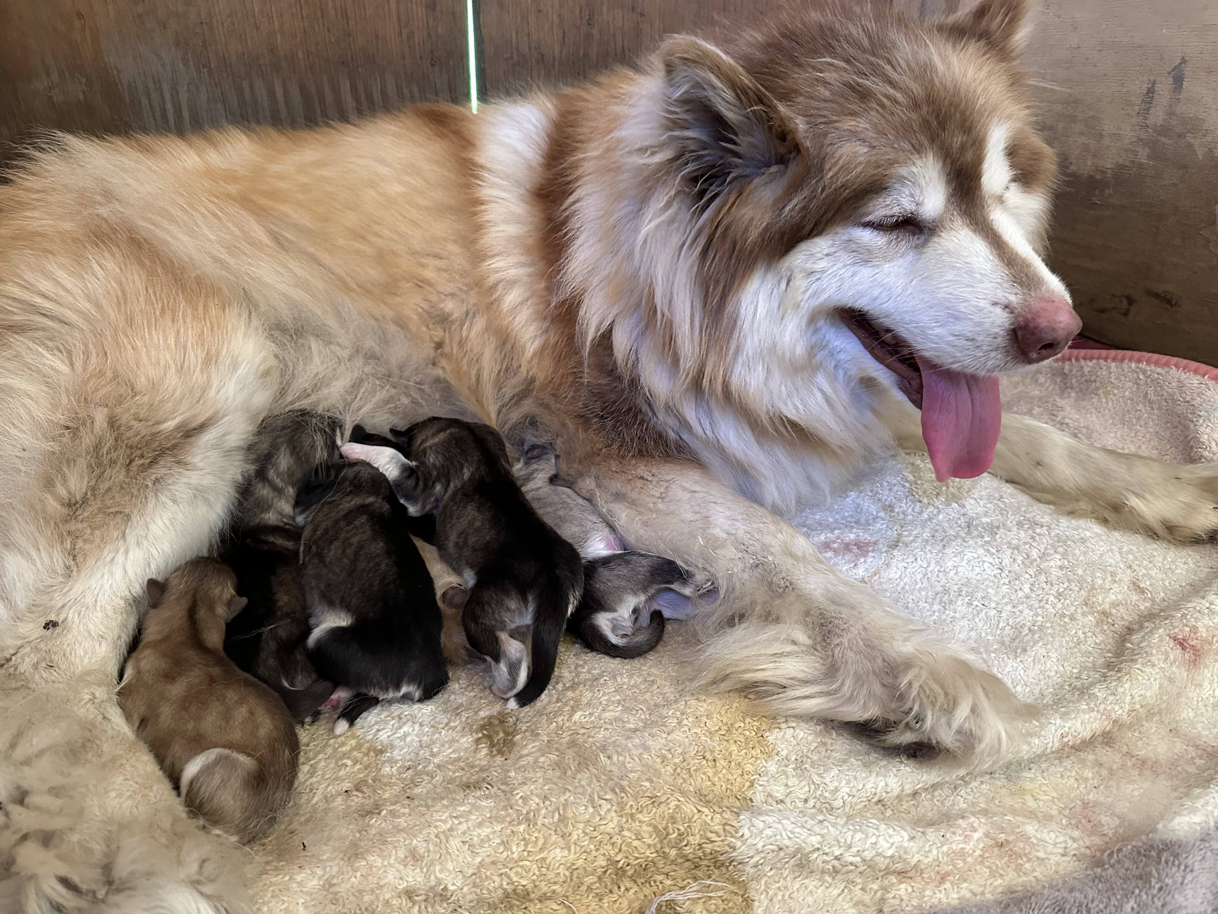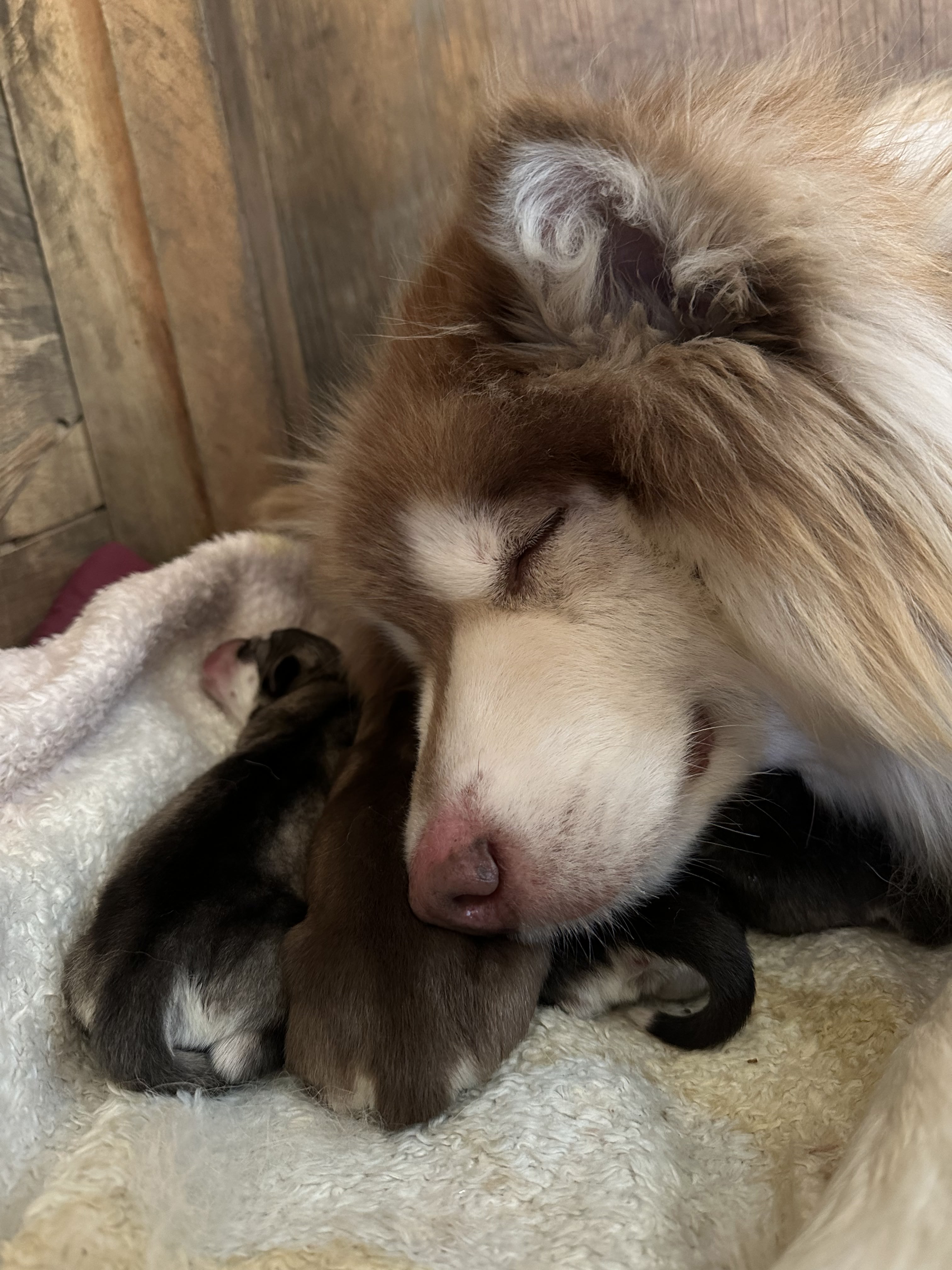 Ruby started the whelping process shortly after midnight and 5 beautiful little puppies (2 male and 3 female) were born on July 4, 2024. The puppies have all gone to amazing new homes.