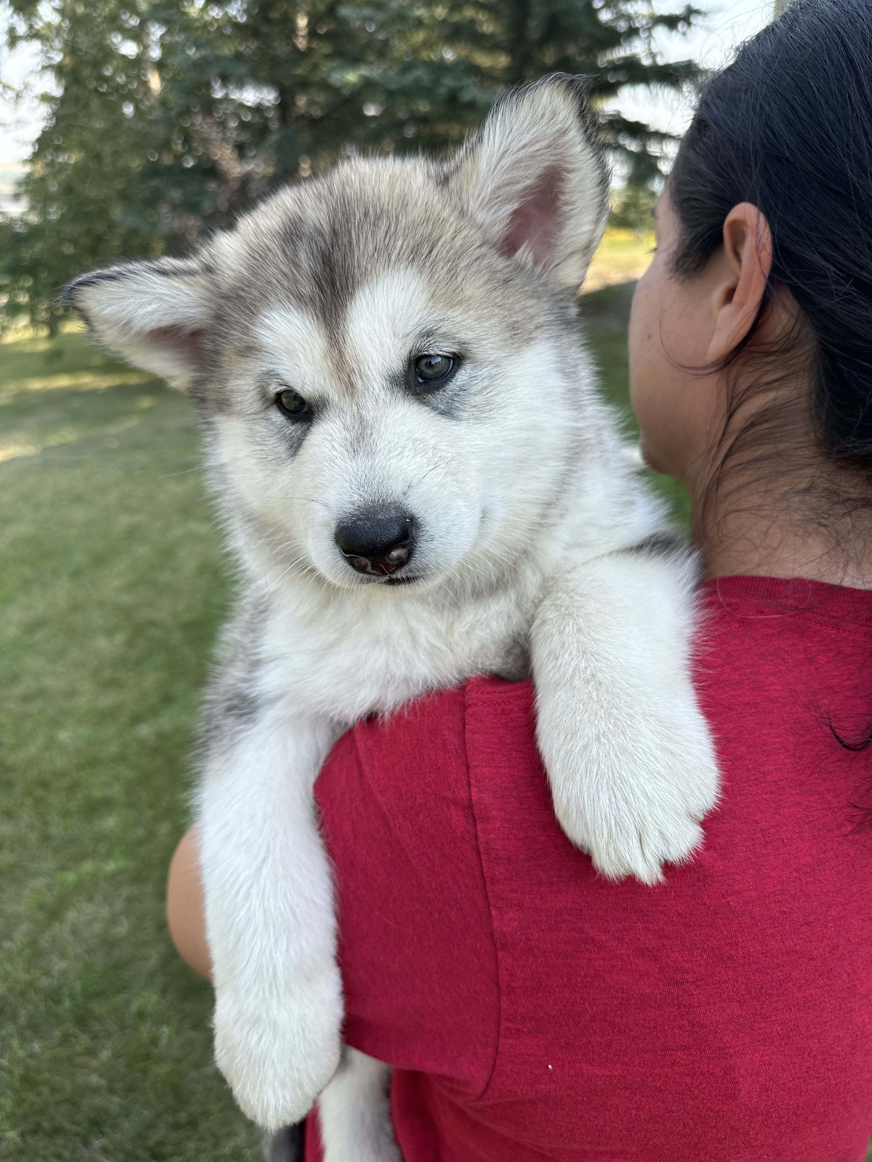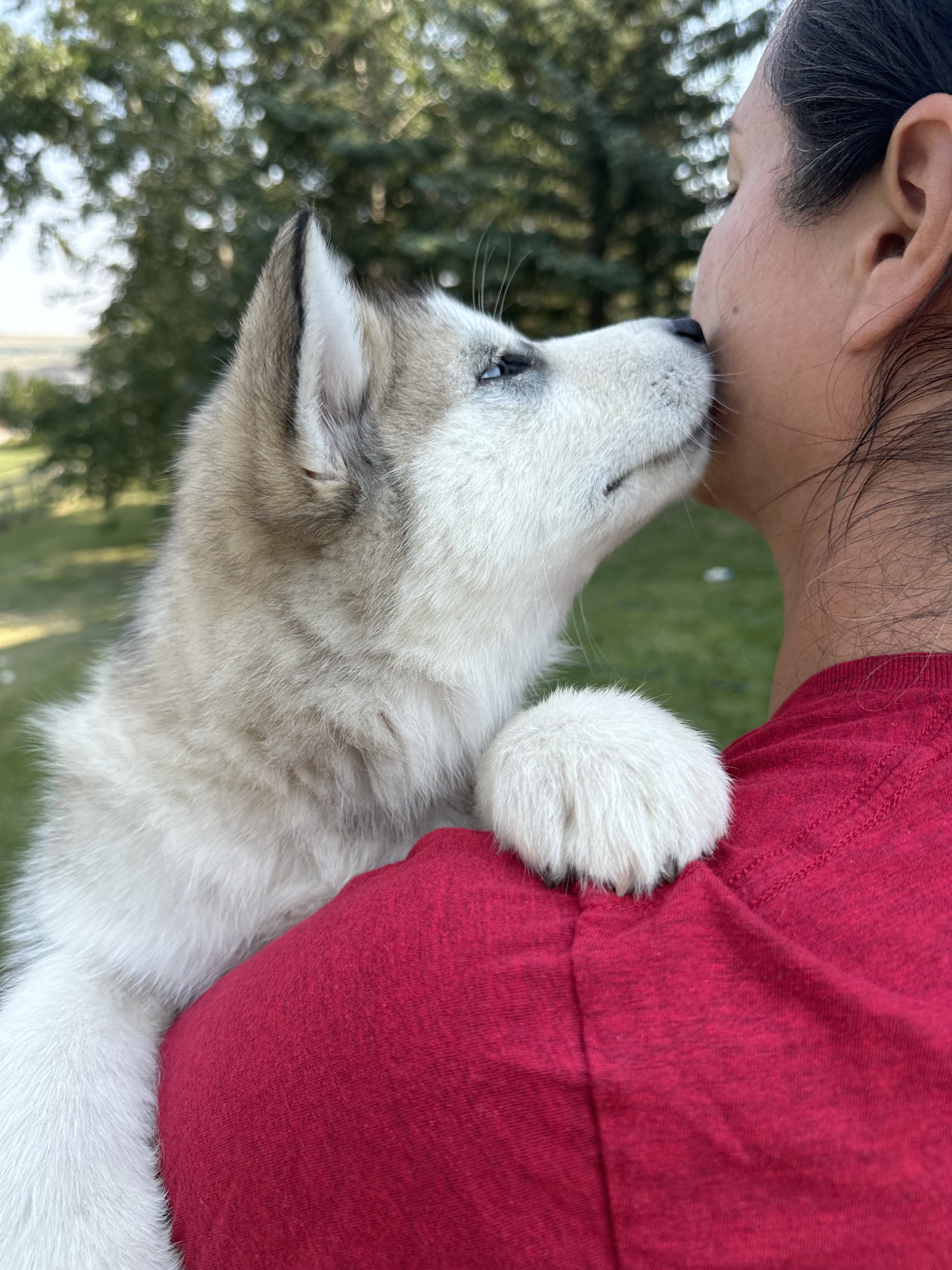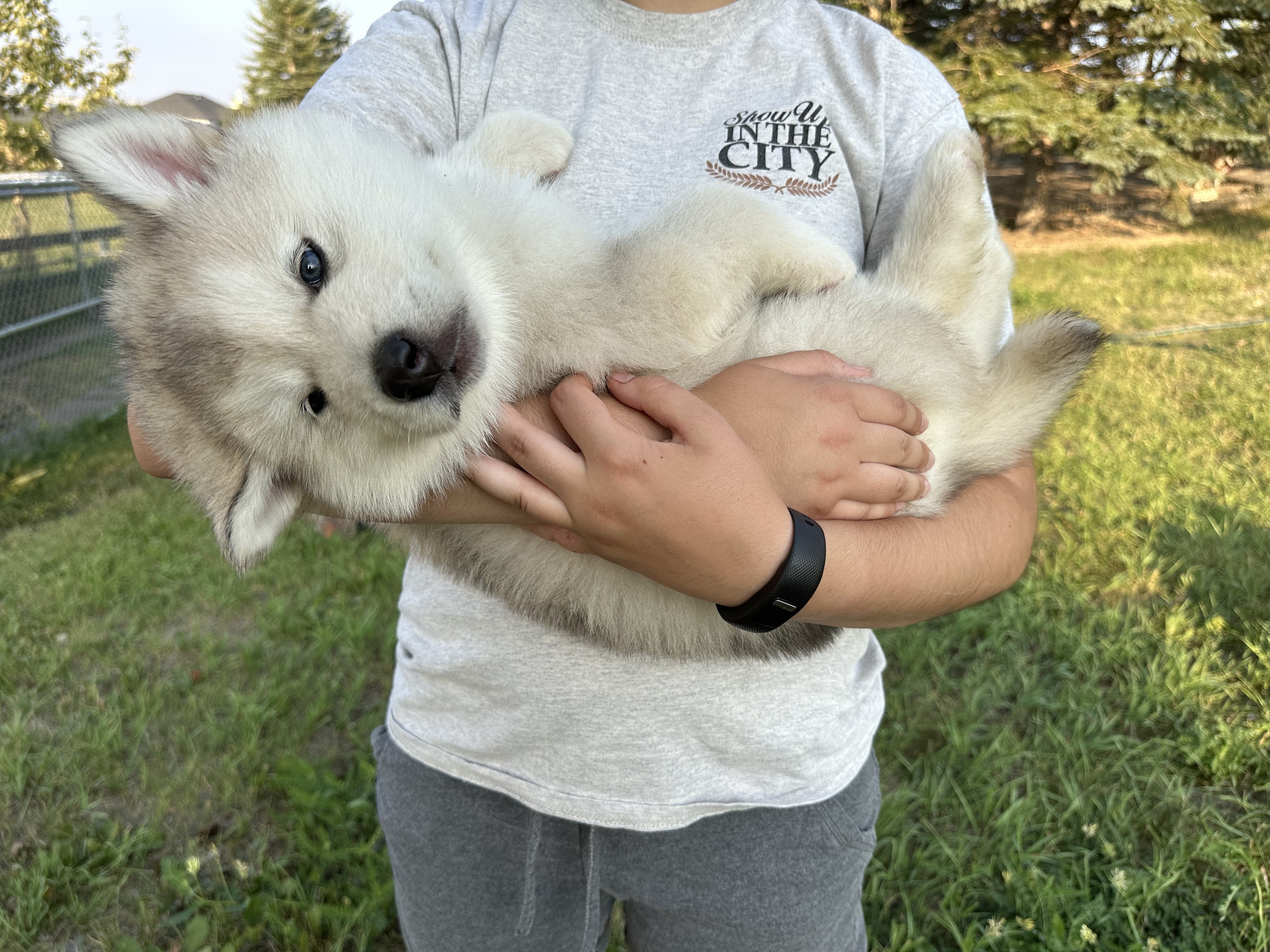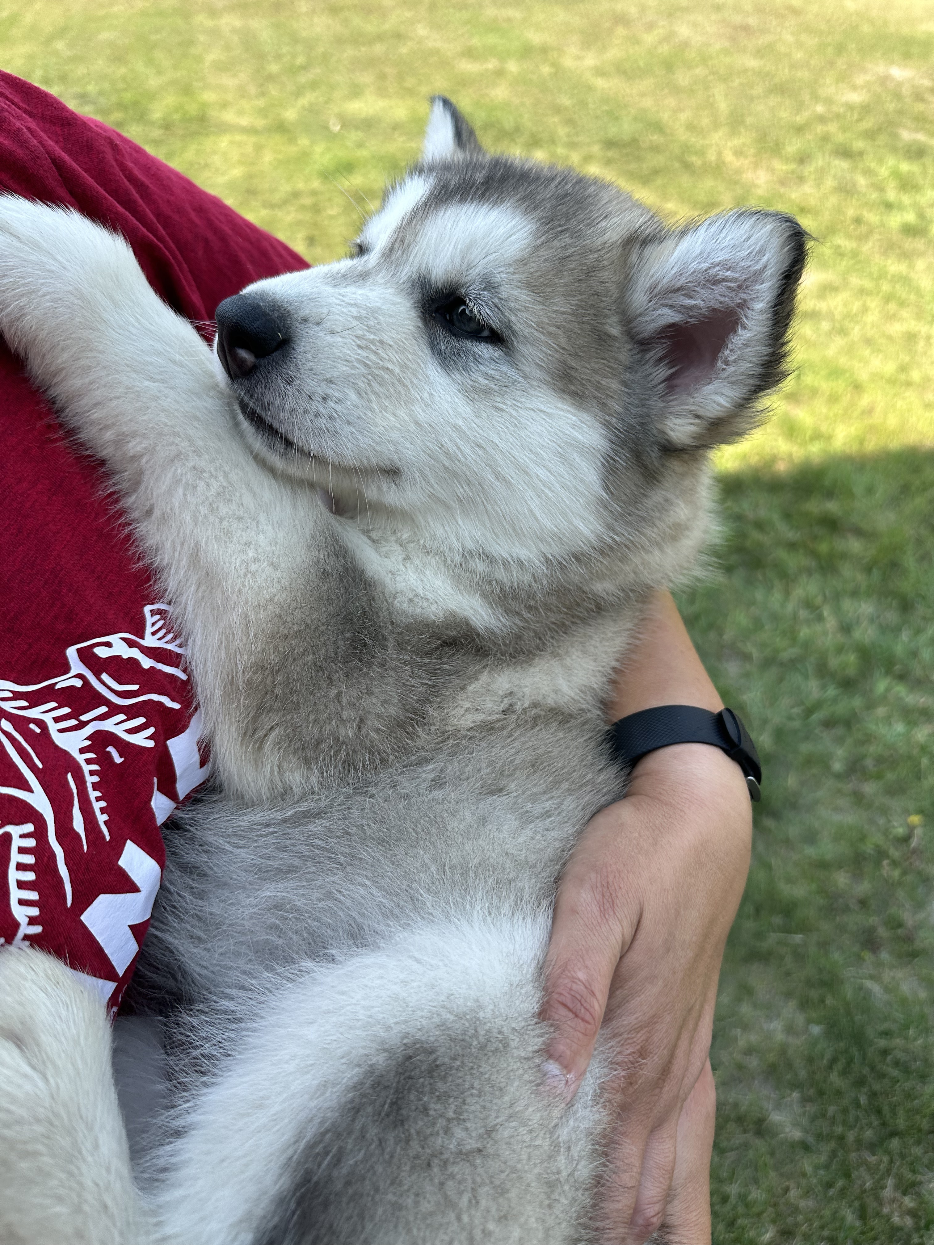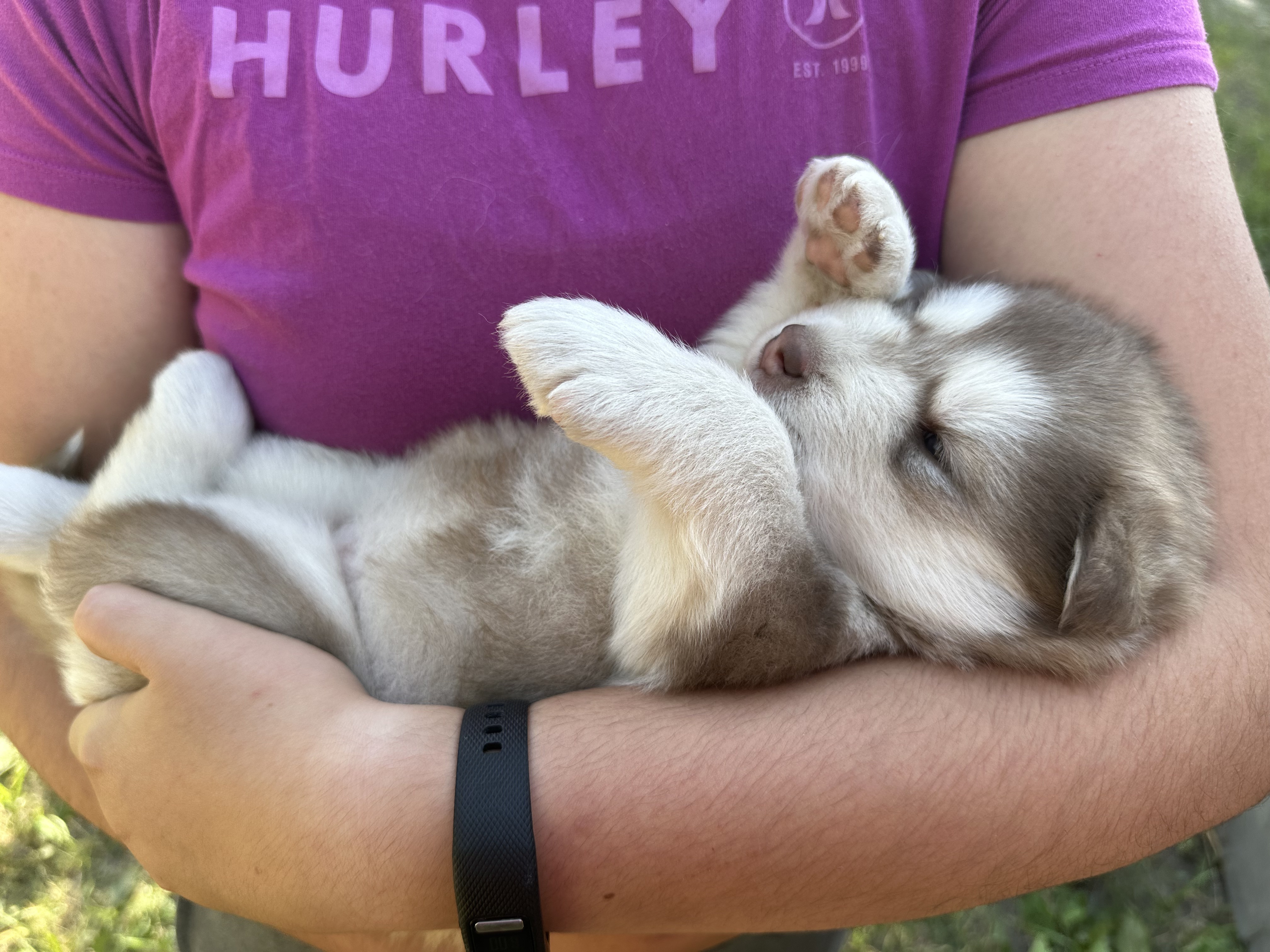 Our bundles of joy continue to become more active and adventurous as they run and play together while exploring their surroundings. Their unique personalities continue to develop and through their play they are starting to develop their sense of pack order. It is so much fun to play with them and it still never ceases to amaze us how fast they grow.