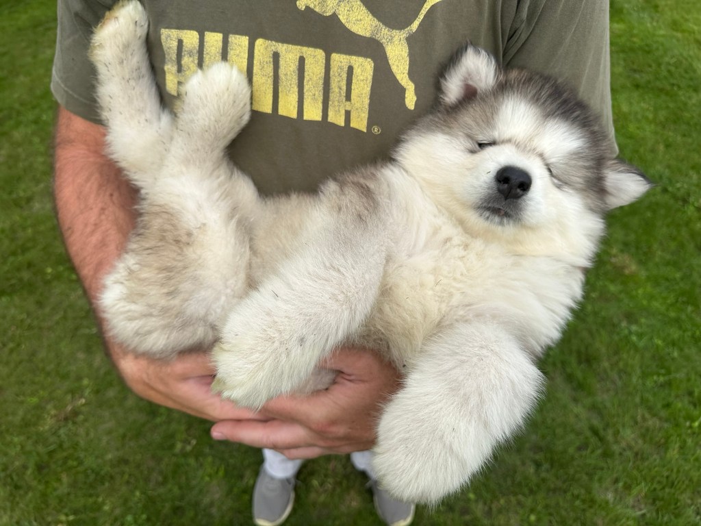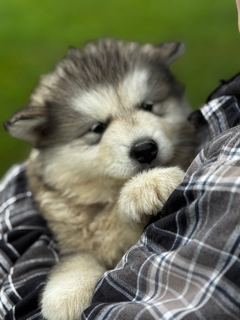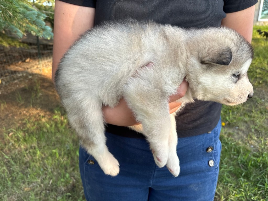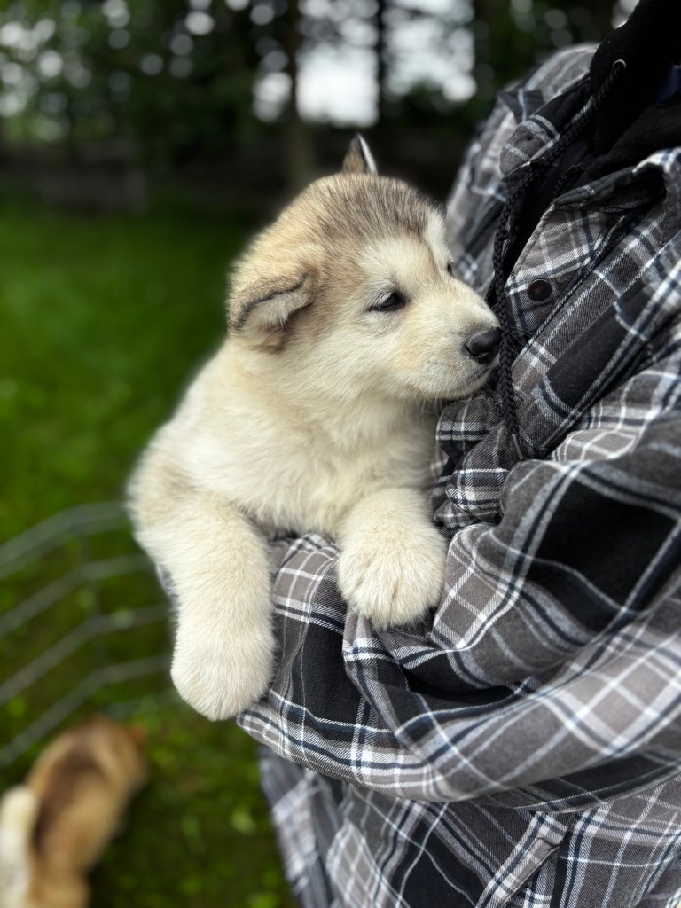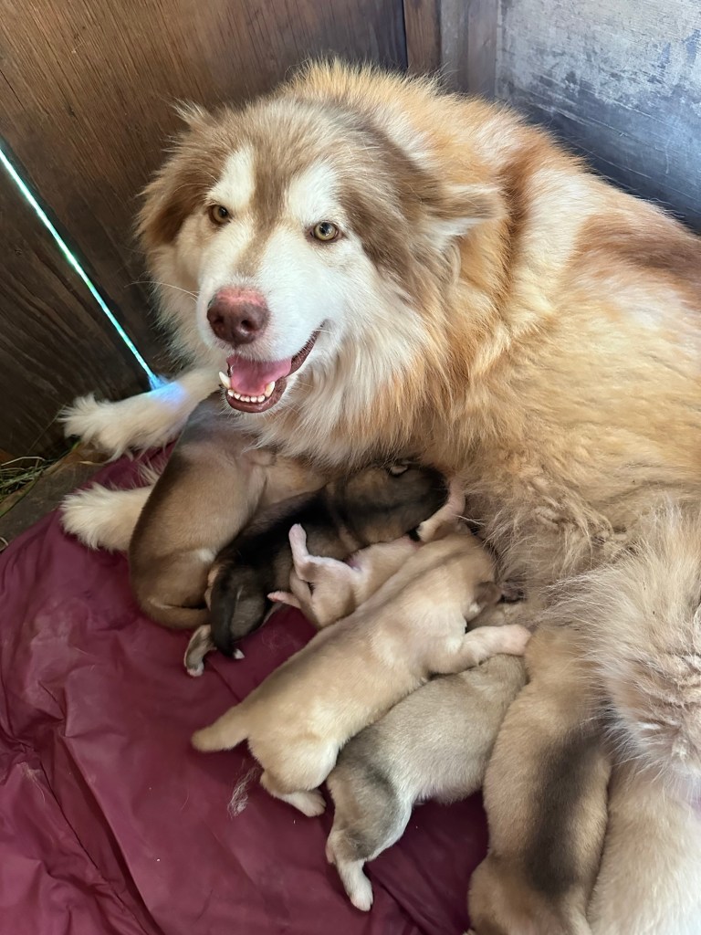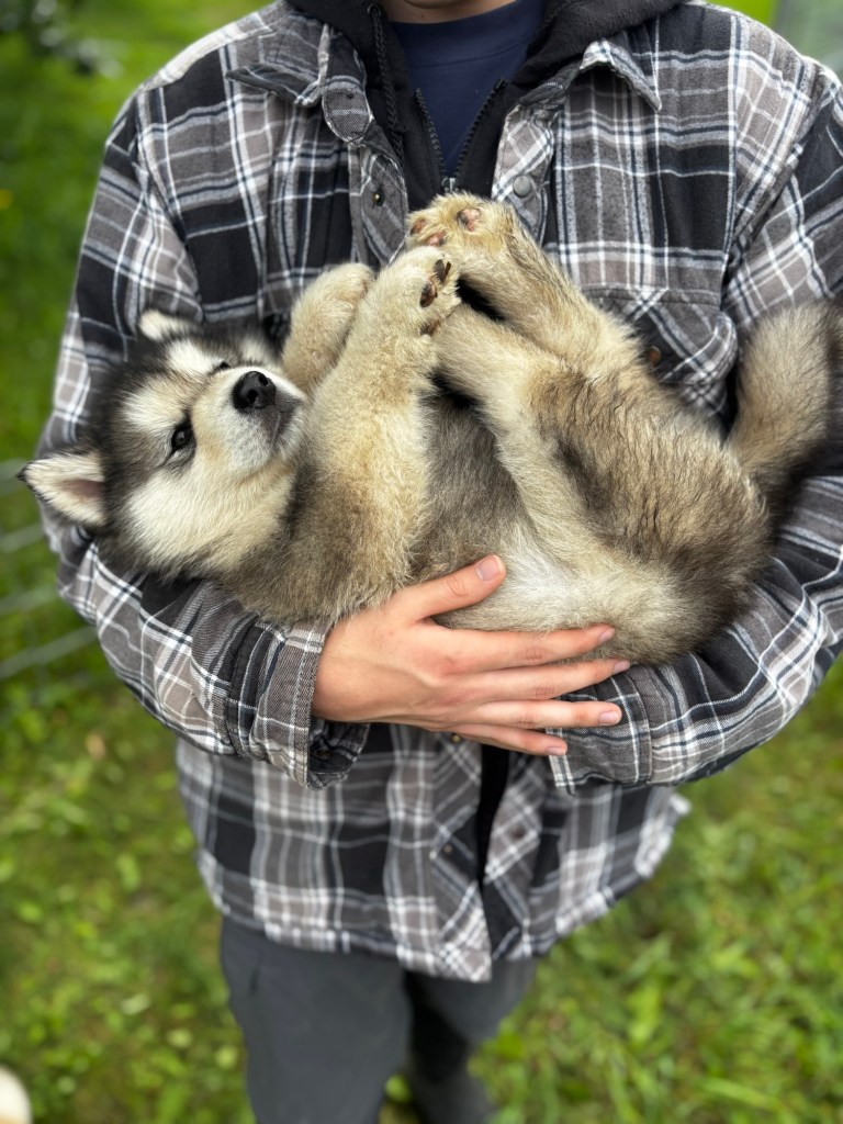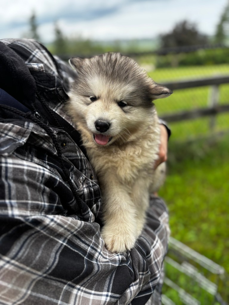 Our Alaskan Malamute puppies are now just over 6 weeks old, and it’s hard to believe how quickly the time has flown! These pups are bursting with energy, curiosity, and personality. They’re eating well, learning basic social skills through play, and growing more confident each day as they explore the world around them.
