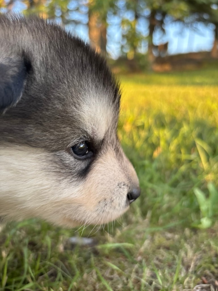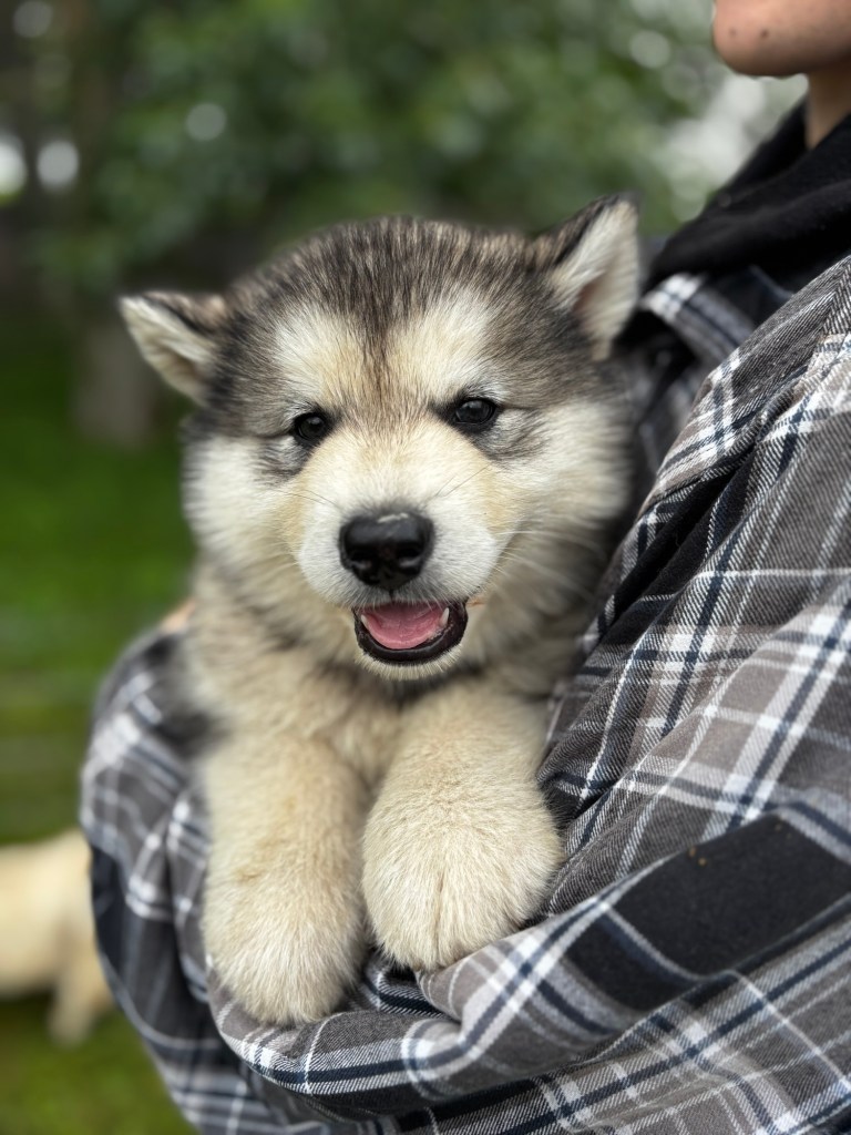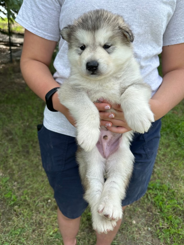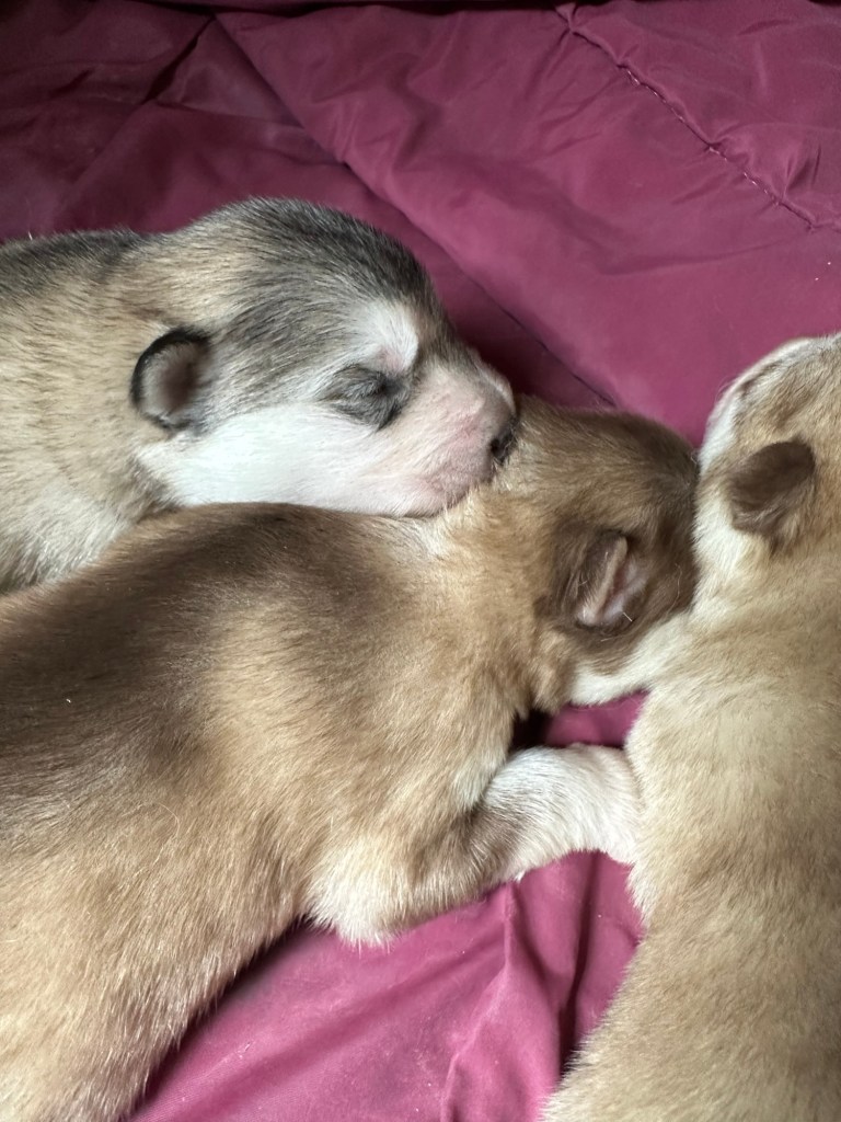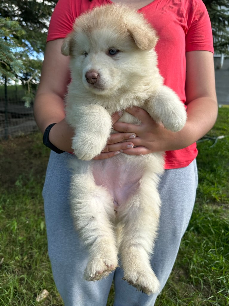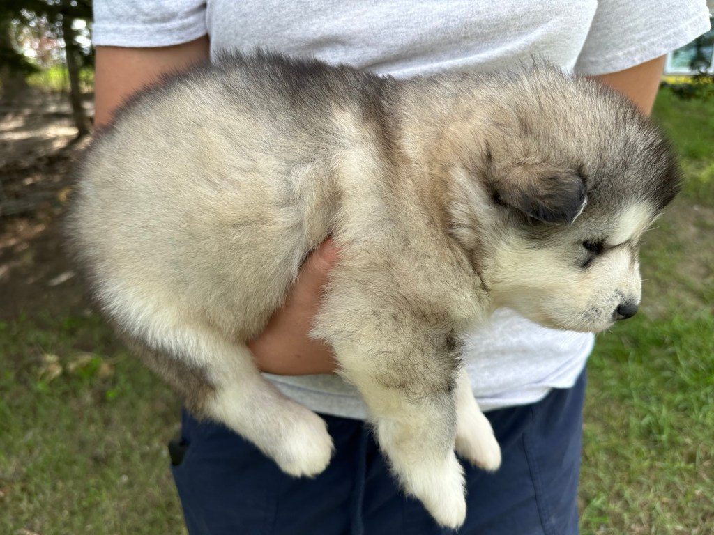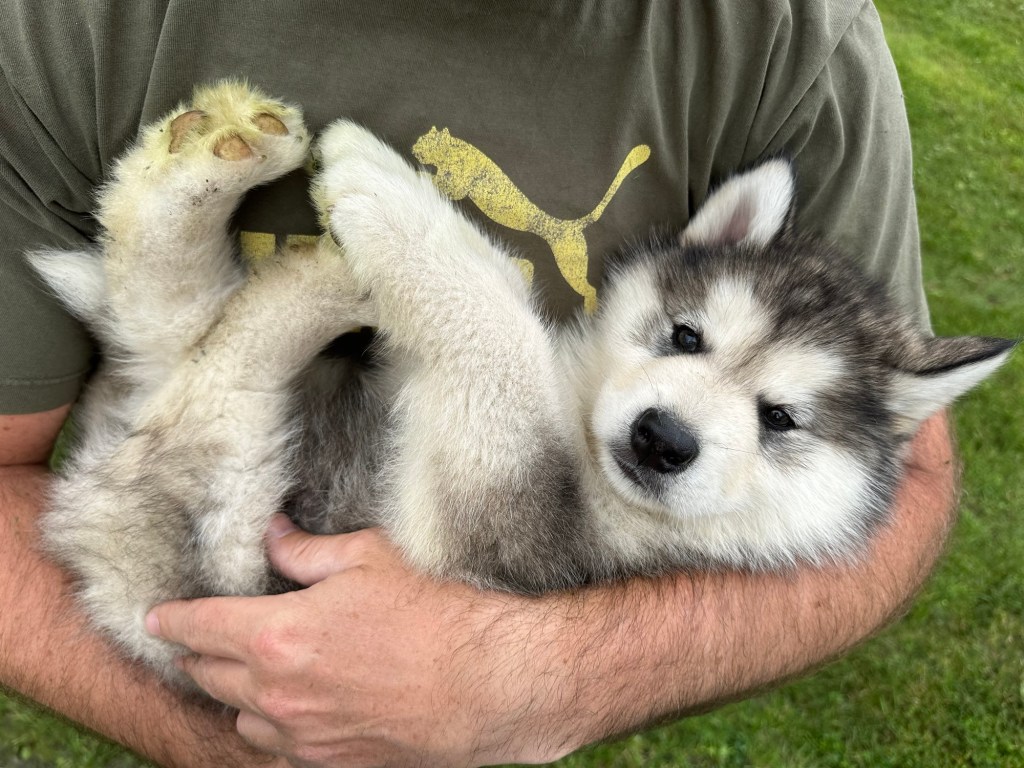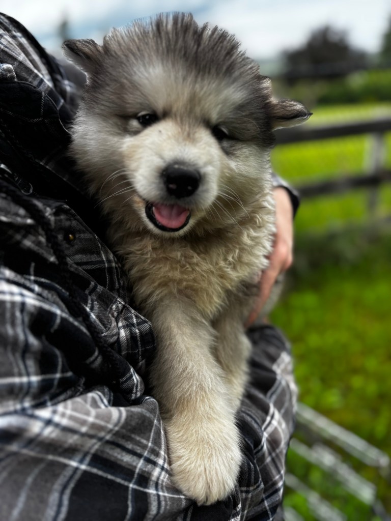 Our Alaskan Malamute puppies are now just over 6 weeks old, and it’s hard to believe how quickly the time has flown! These pups are bursting with energy, curiosity, and personality. They’re eating well, learning basic social skills through play, and growing more confident each day as they explore the world around them.