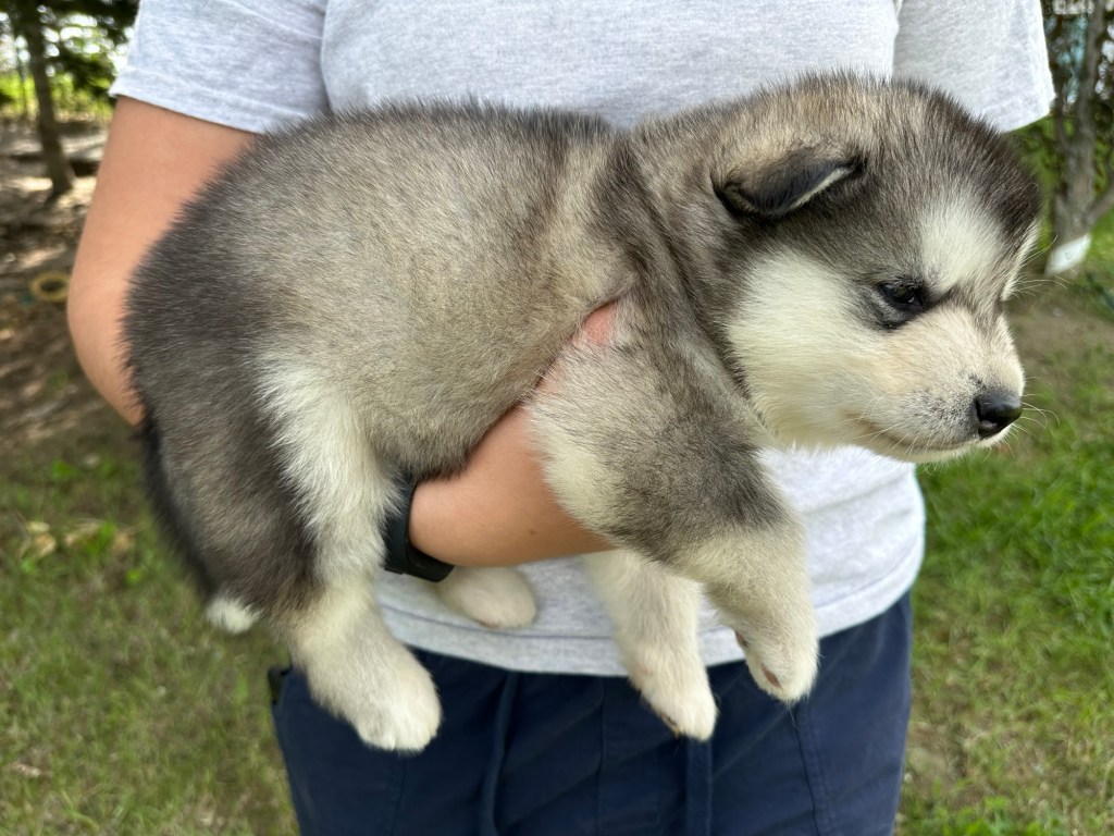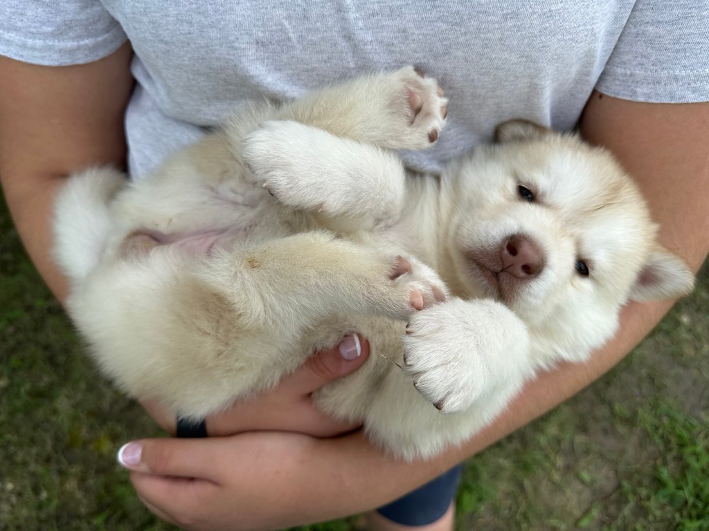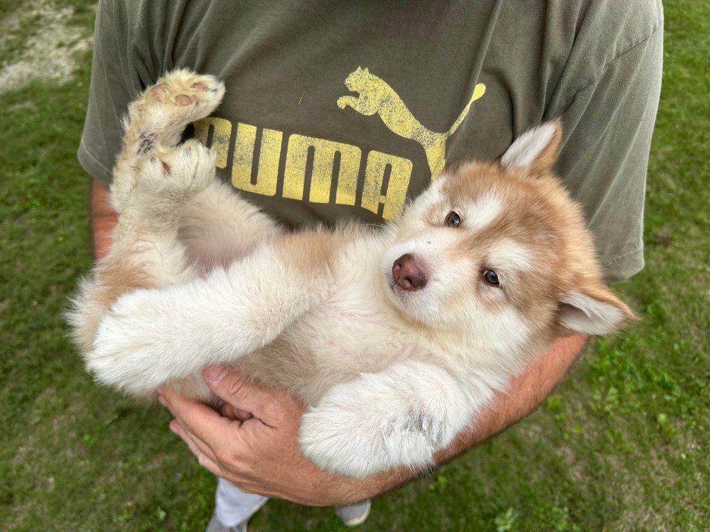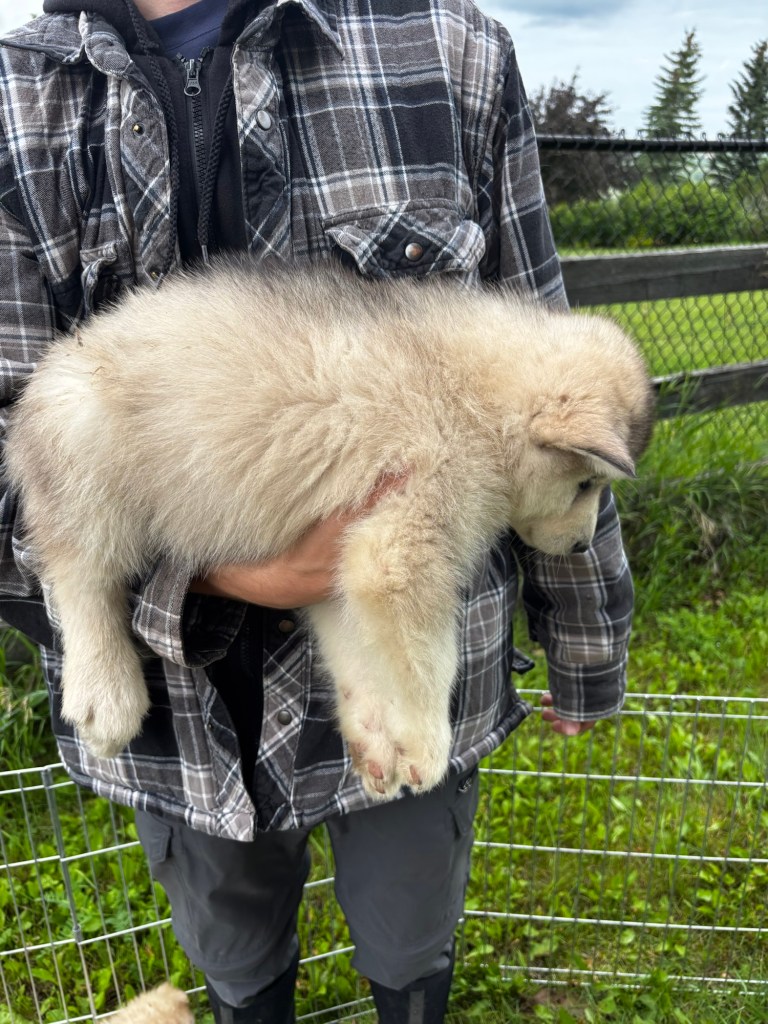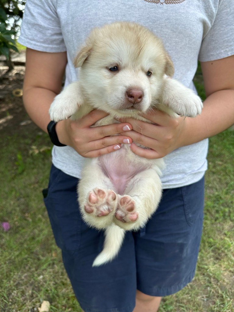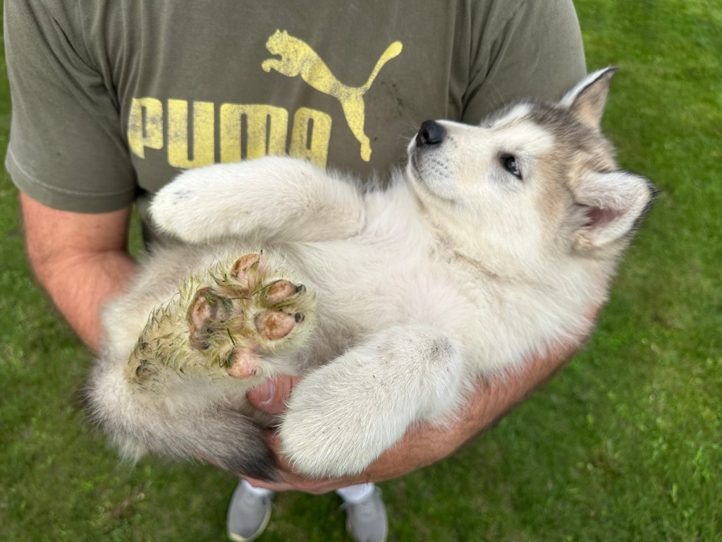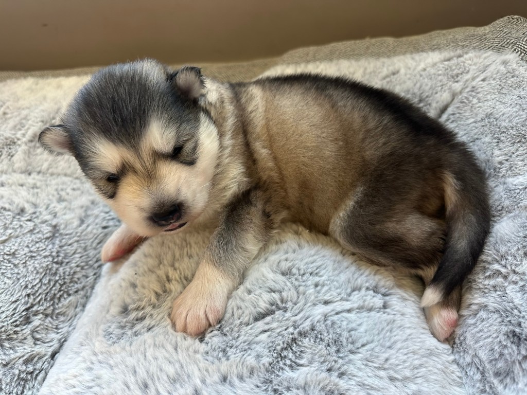 Our Alaskan Malamute puppies are now just over 6 weeks old, and it’s hard to believe how quickly the time has flown! These pups are bursting with energy, curiosity, and personality. They’re eating well, learning basic social skills through play, and growing more confident each day as they explore the world around them.