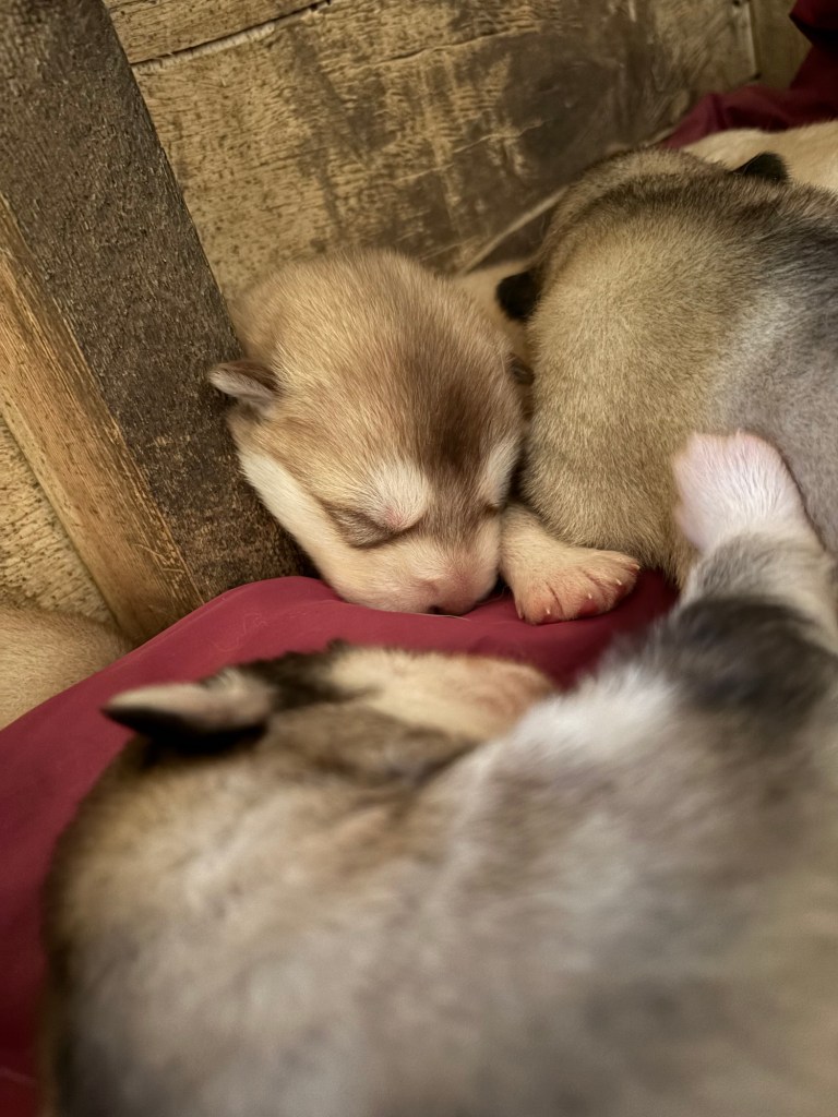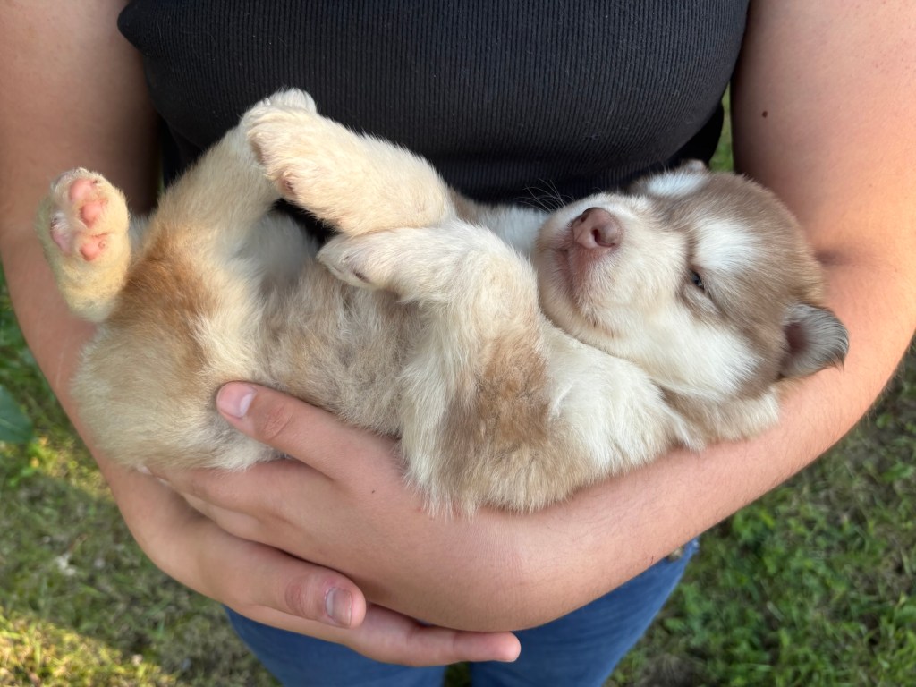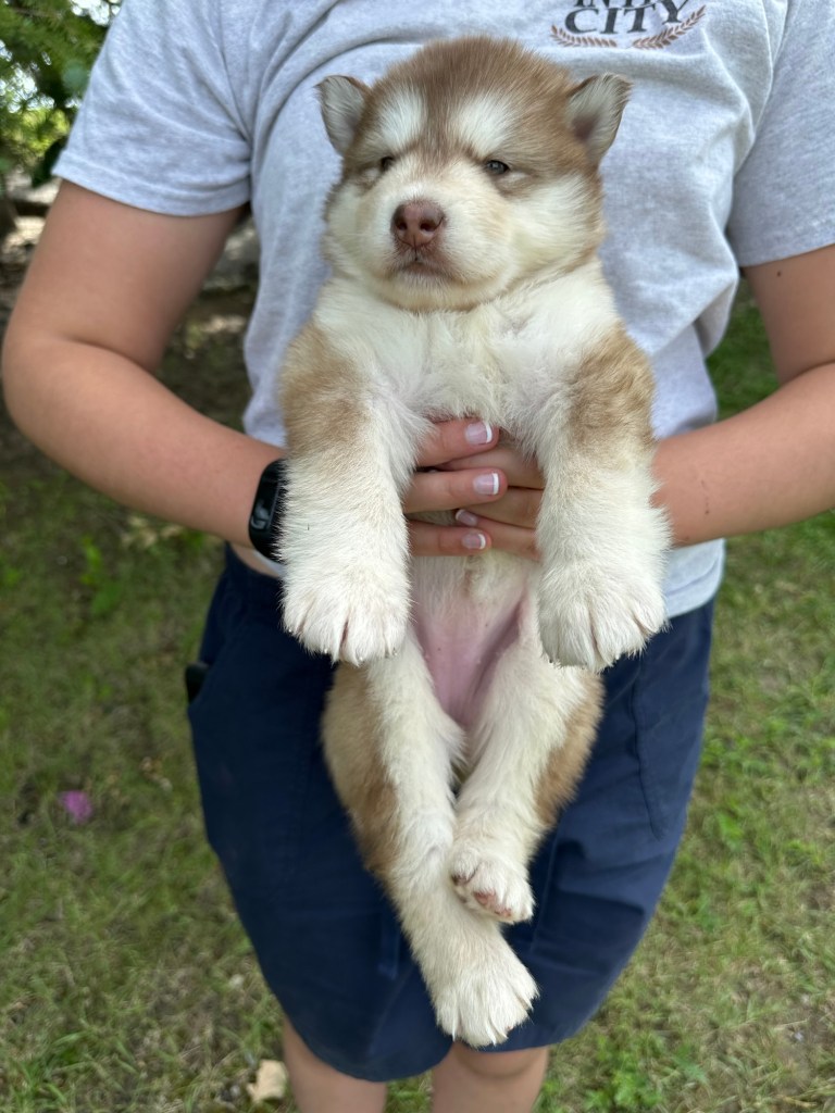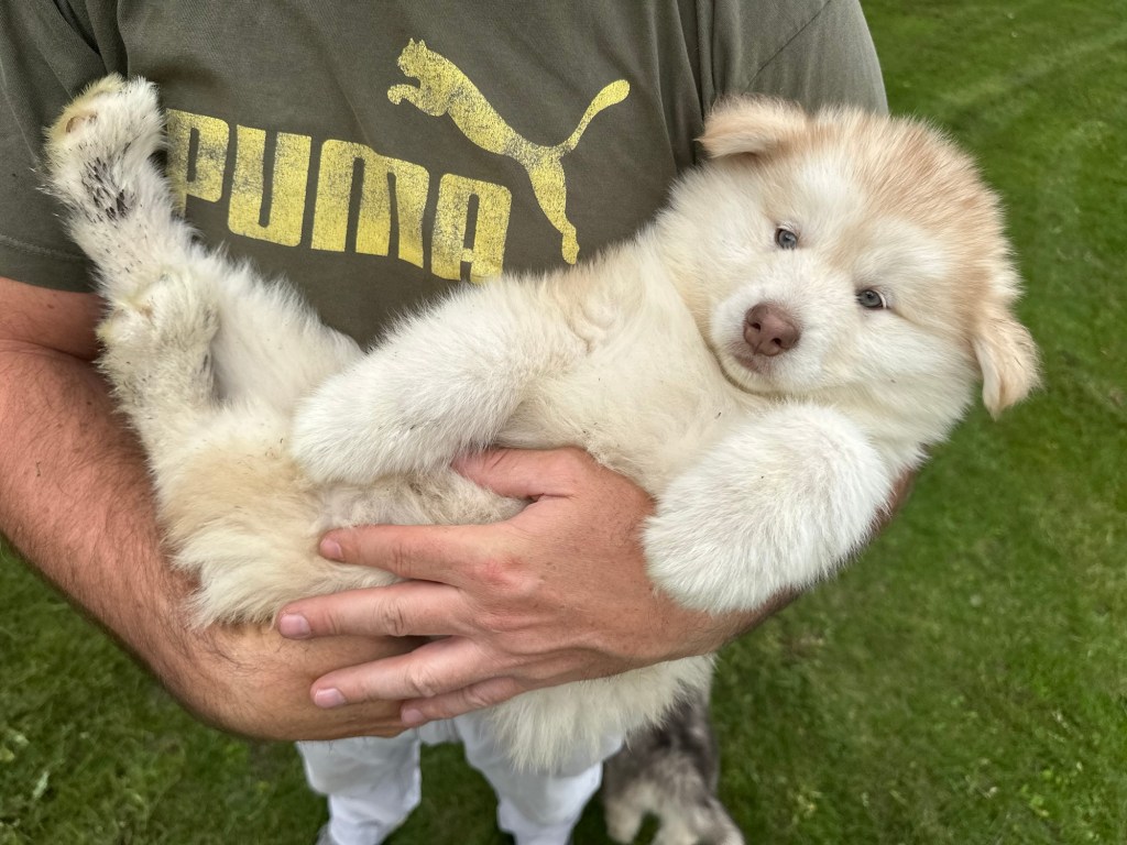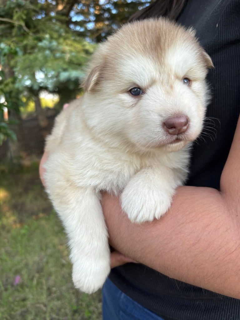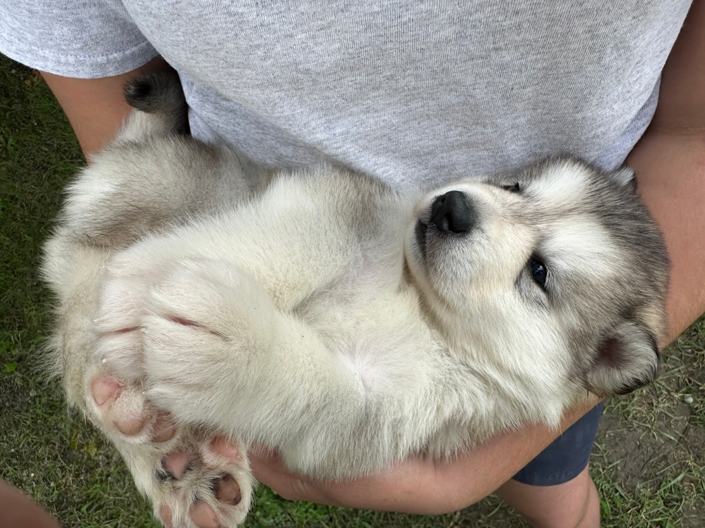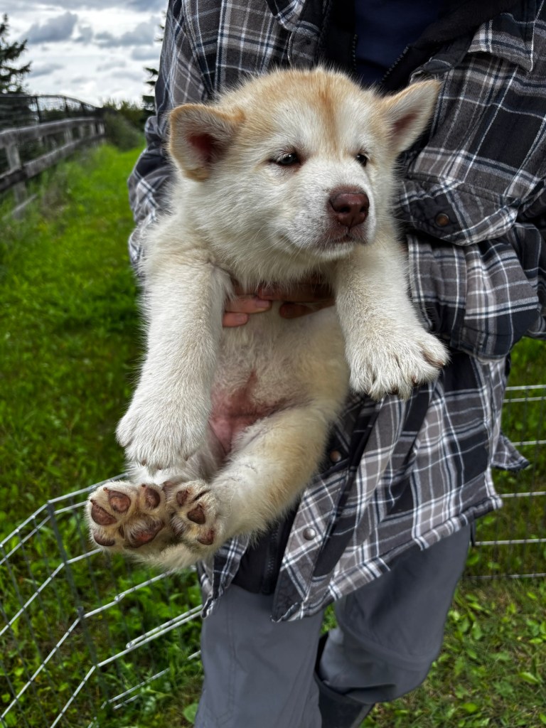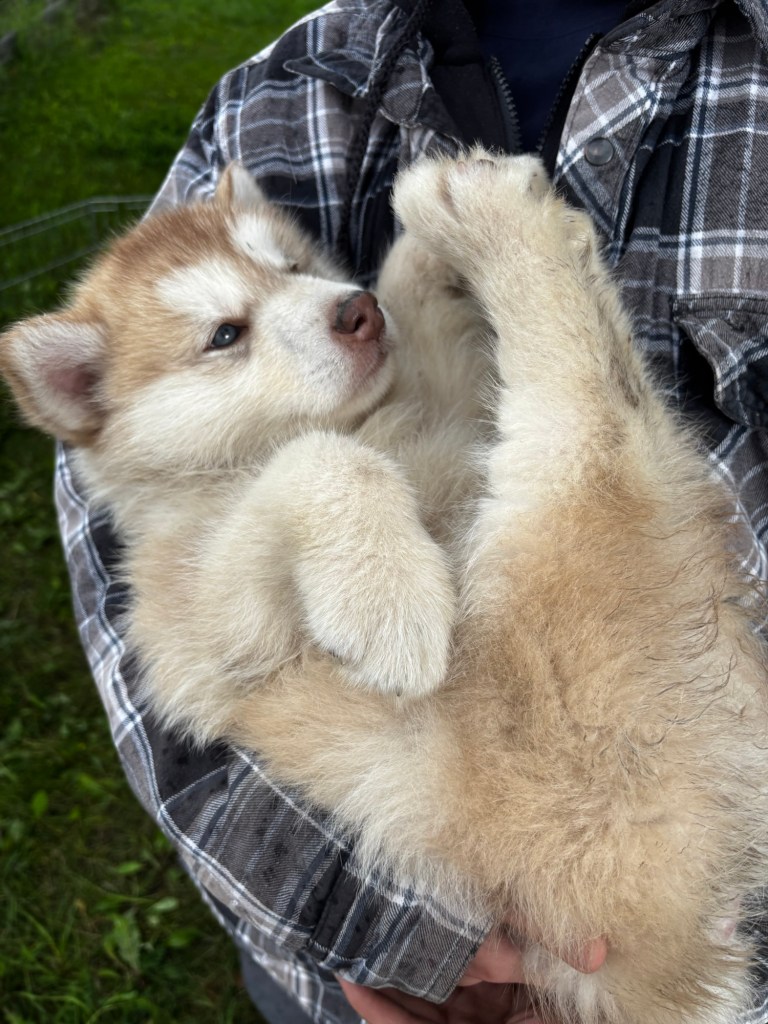 Our Alaskan Malamute puppies are now just over 6 weeks old, and it’s hard to believe how quickly the time has flown! These pups are bursting with energy, curiosity, and personality. They’re eating well, learning basic social skills through play, and growing more confident each day as they explore the world around them.