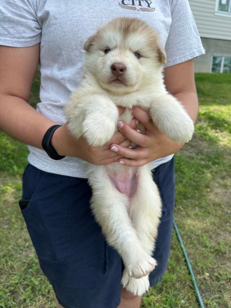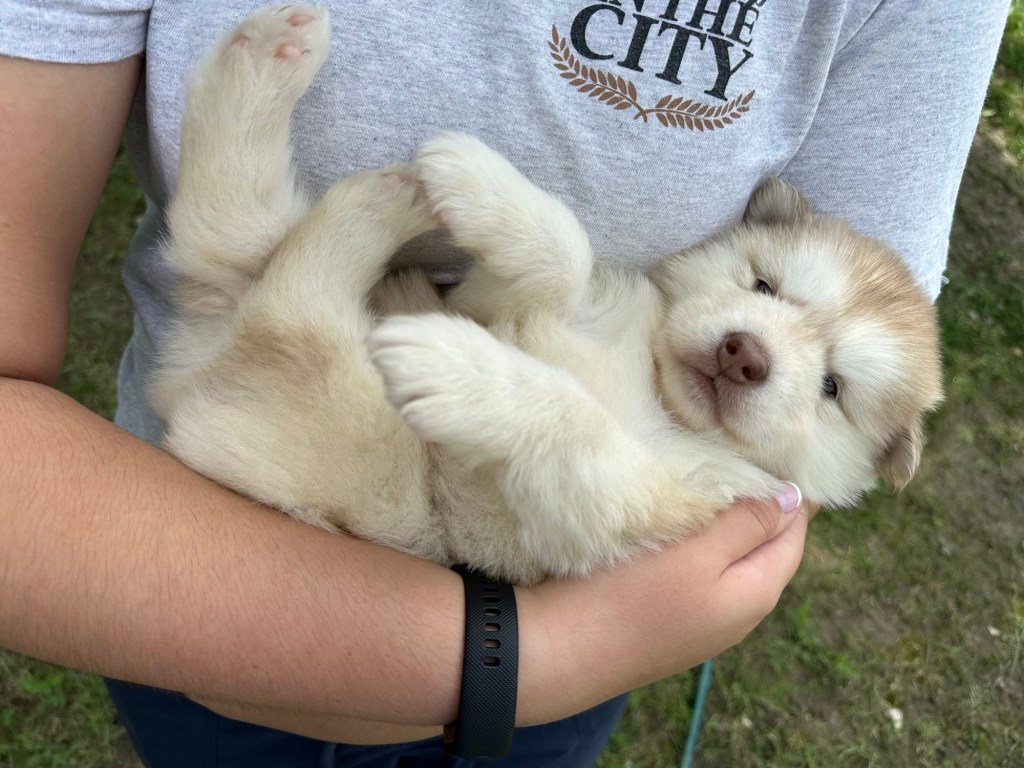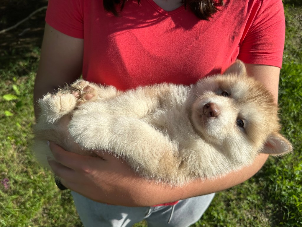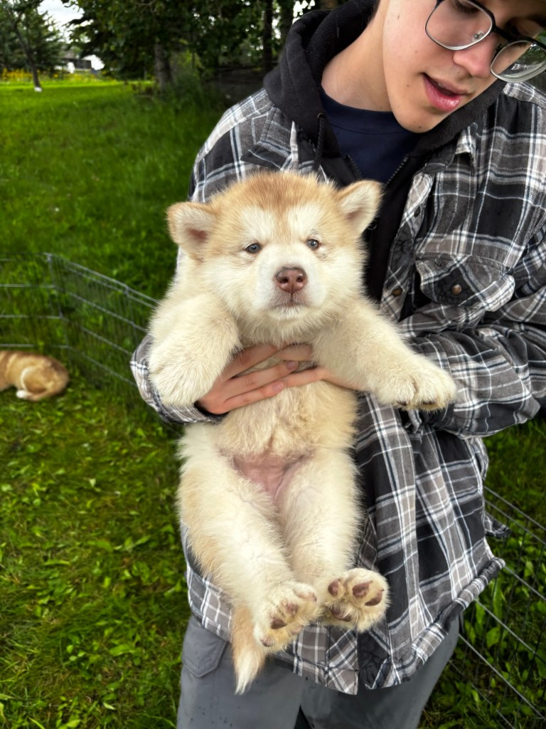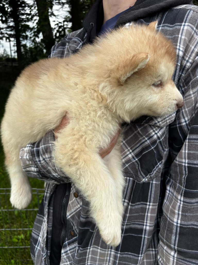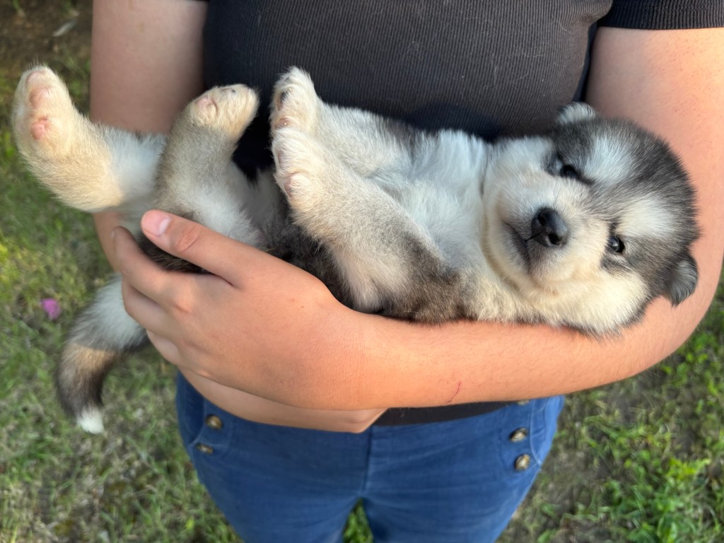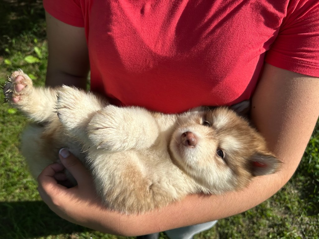 Our Alaskan Malamute puppies are now just over 6 weeks old, and it’s hard to believe how quickly the time has flown! These pups are bursting with energy, curiosity, and personality. They’re eating well, learning basic social skills through play, and growing more confident each day as they explore the world around them.