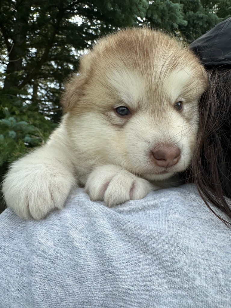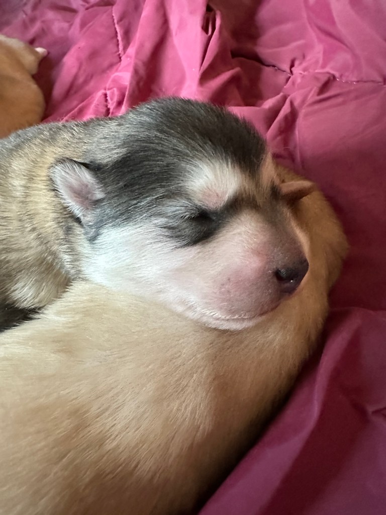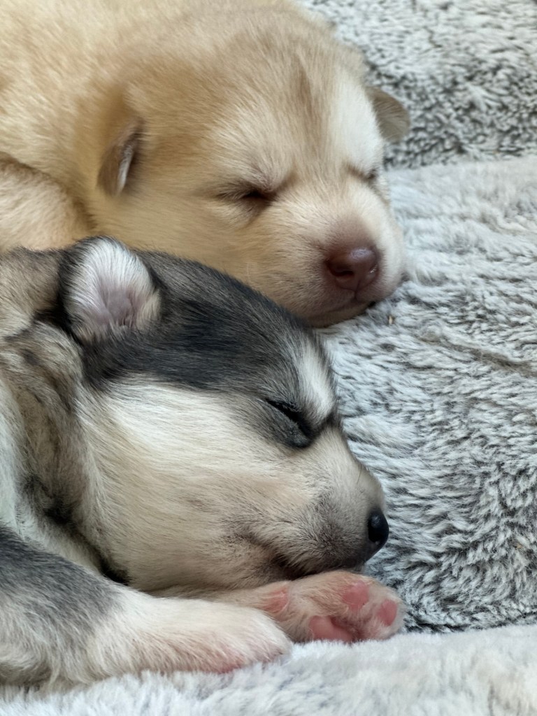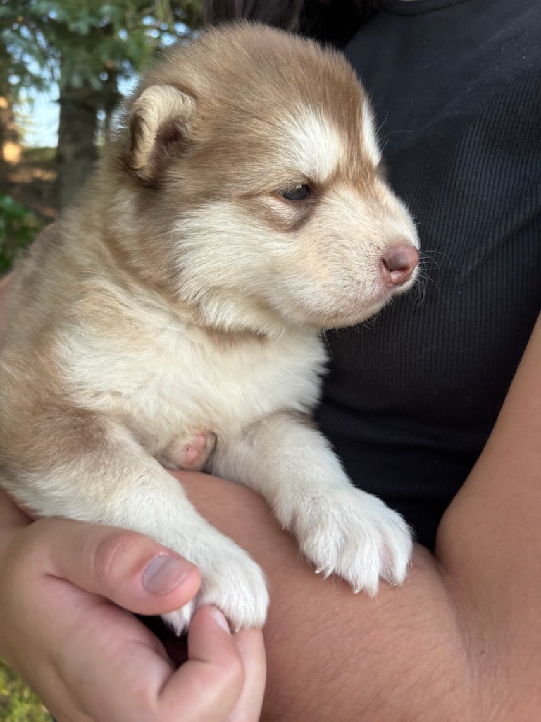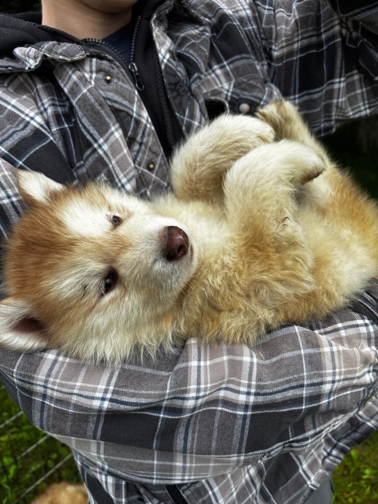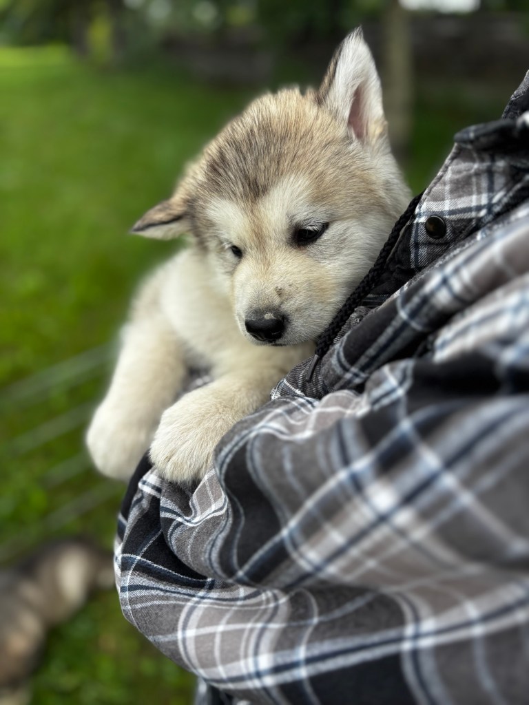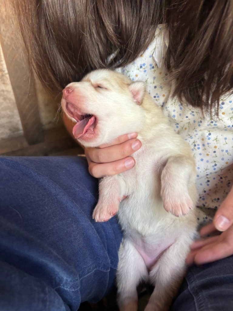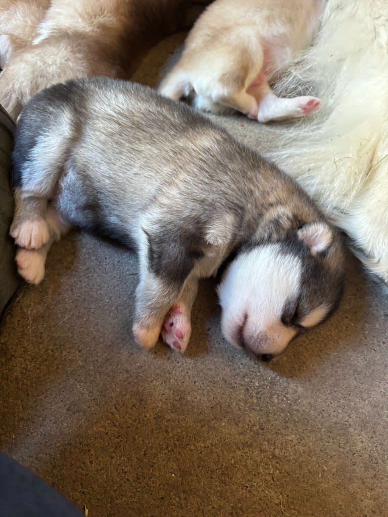 Our Alaskan Malamute puppies are now just over 6 weeks old, and it’s hard to believe how quickly the time has flown! These pups are bursting with energy, curiosity, and personality. They’re eating well, learning basic social skills through play, and growing more confident each day as they explore the world around them.