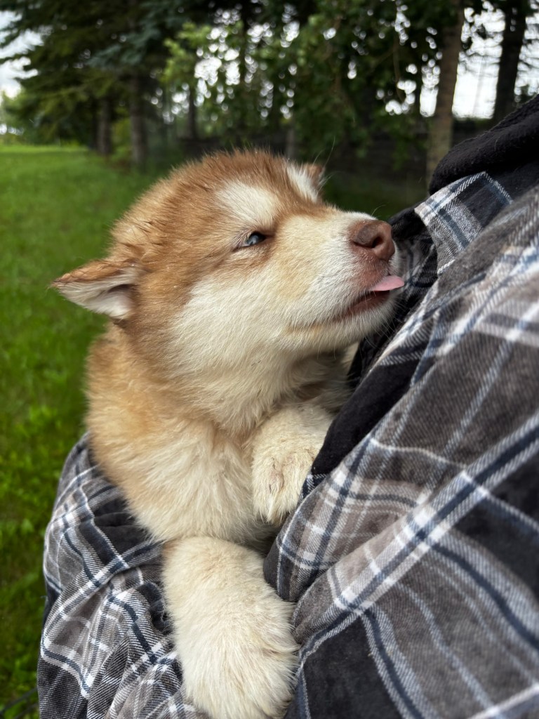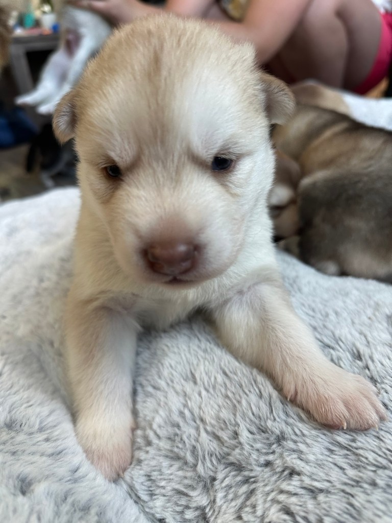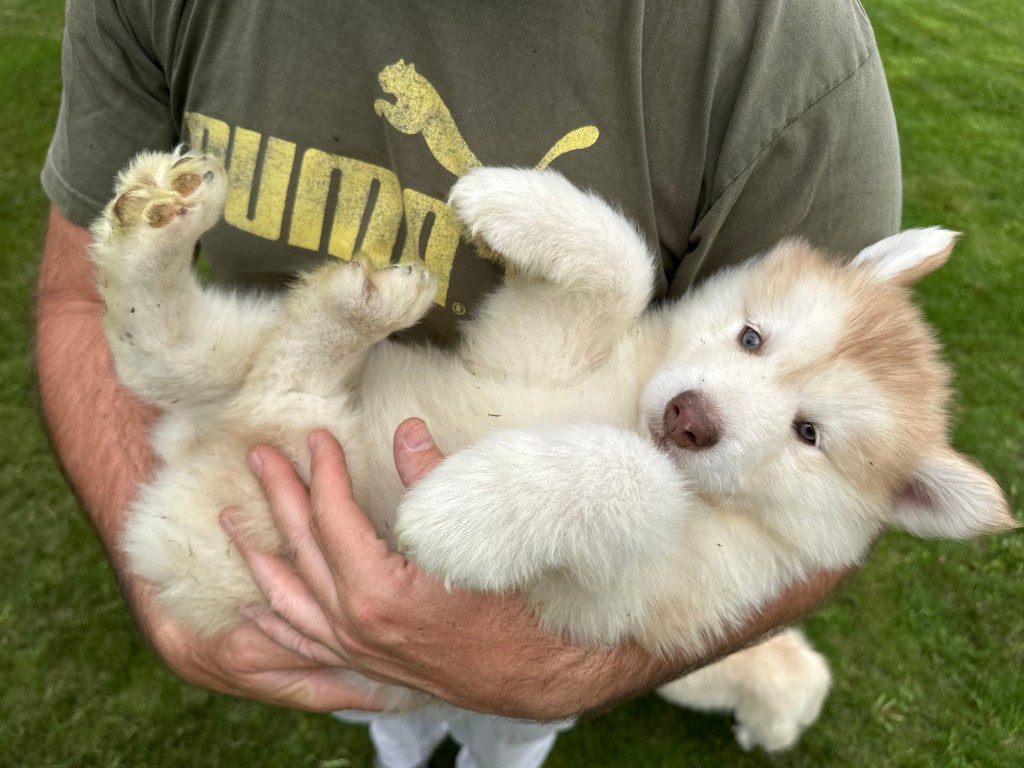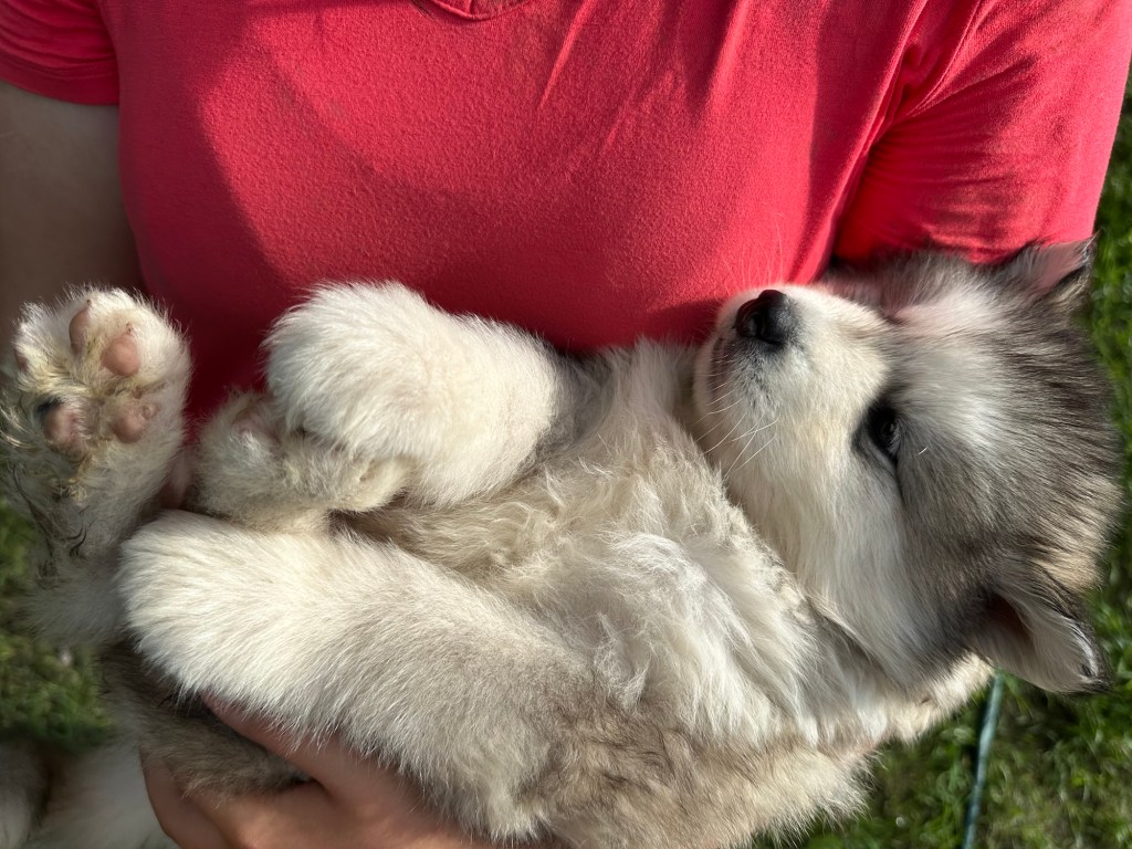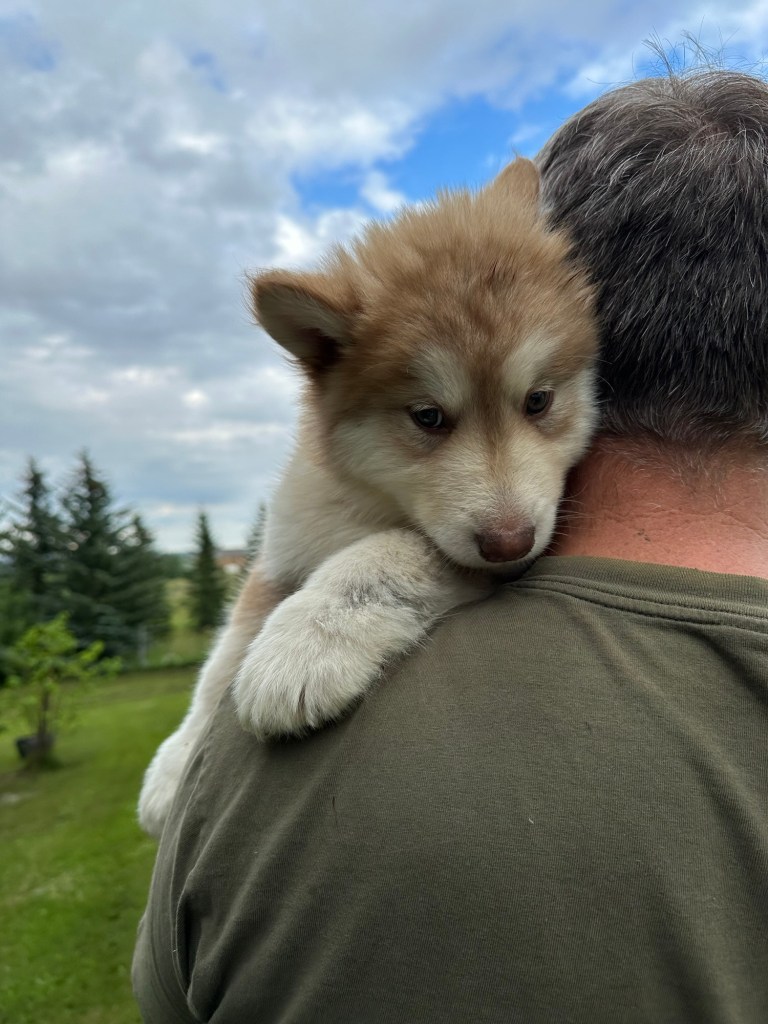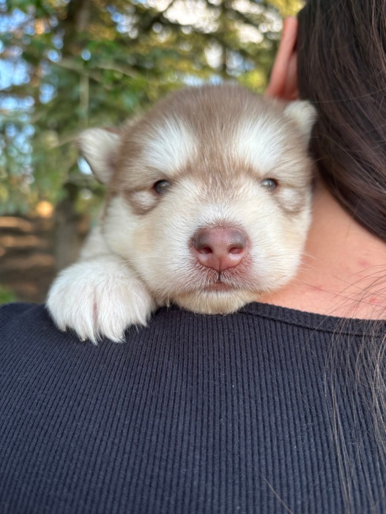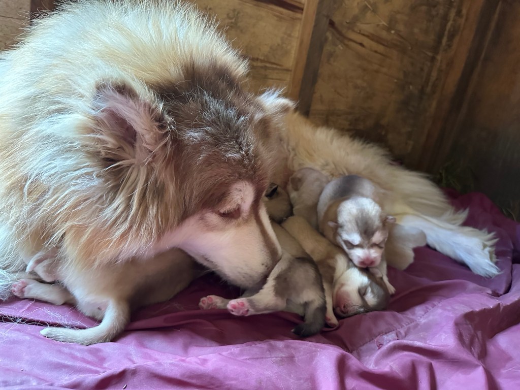 Our Alaskan Malamute puppies are now just over 6 weeks old, and it’s hard to believe how quickly the time has flown! These pups are bursting with energy, curiosity, and personality. They’re eating well, learning basic social skills through play, and growing more confident each day as they explore the world around them.