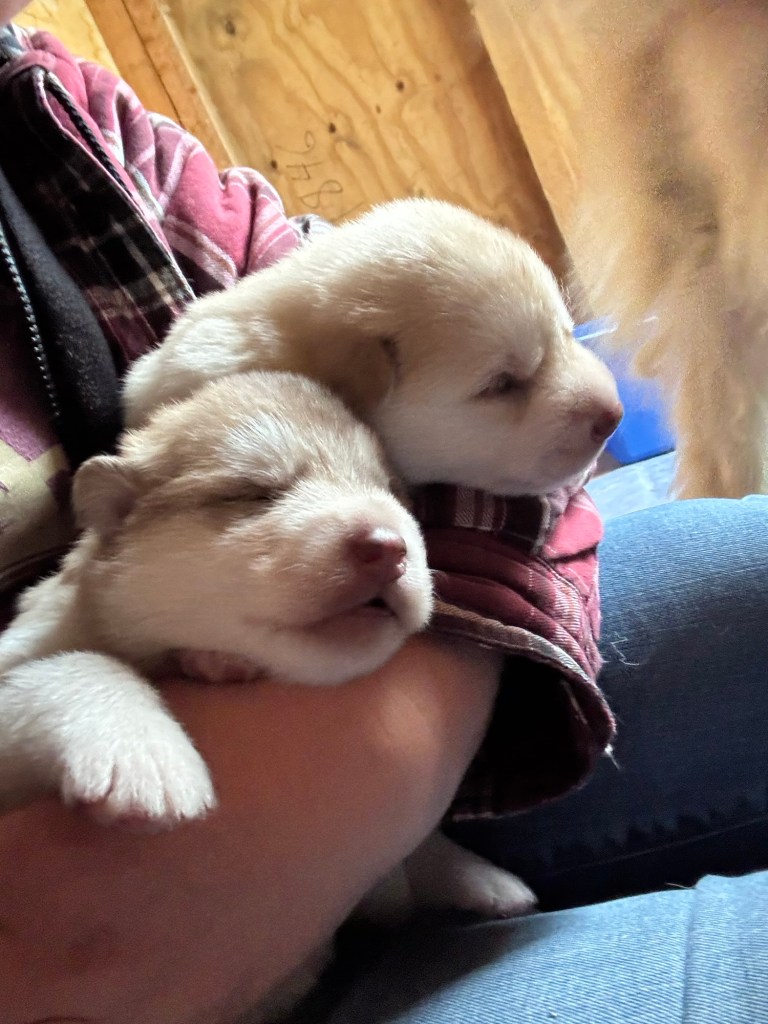 In the first few weeks, the puppies growth in size and strength is incredible. It is amazing to watch the rapid development as they progress from tiny newborns to little puppies who begin opening their eyes to explore a big new world. Here is a selection of photos to share their progress. Ruby, as always, is an incredible mom nursing her babies and caring for their every need. We’re happy to be part of the supporting cast who get to enjoy the cuddles and extra soft fur on a daily basis.