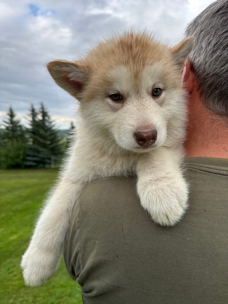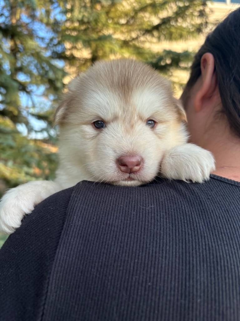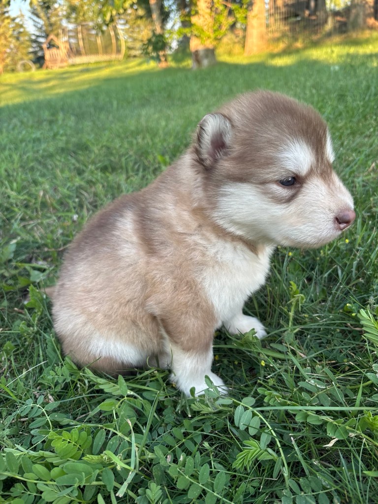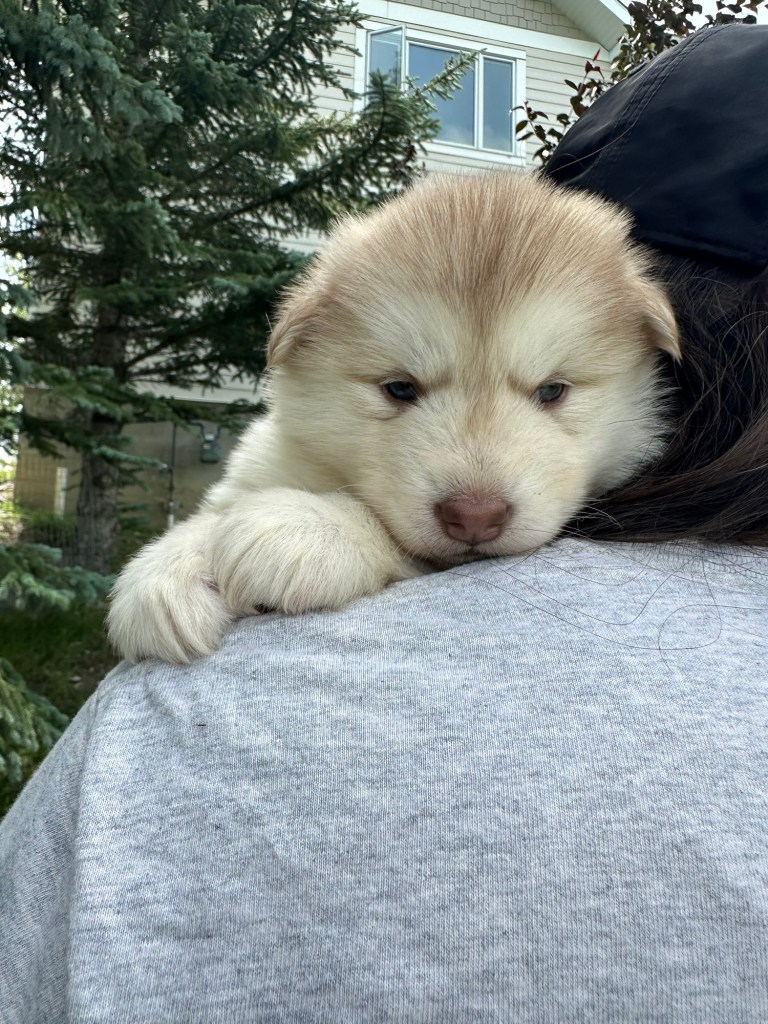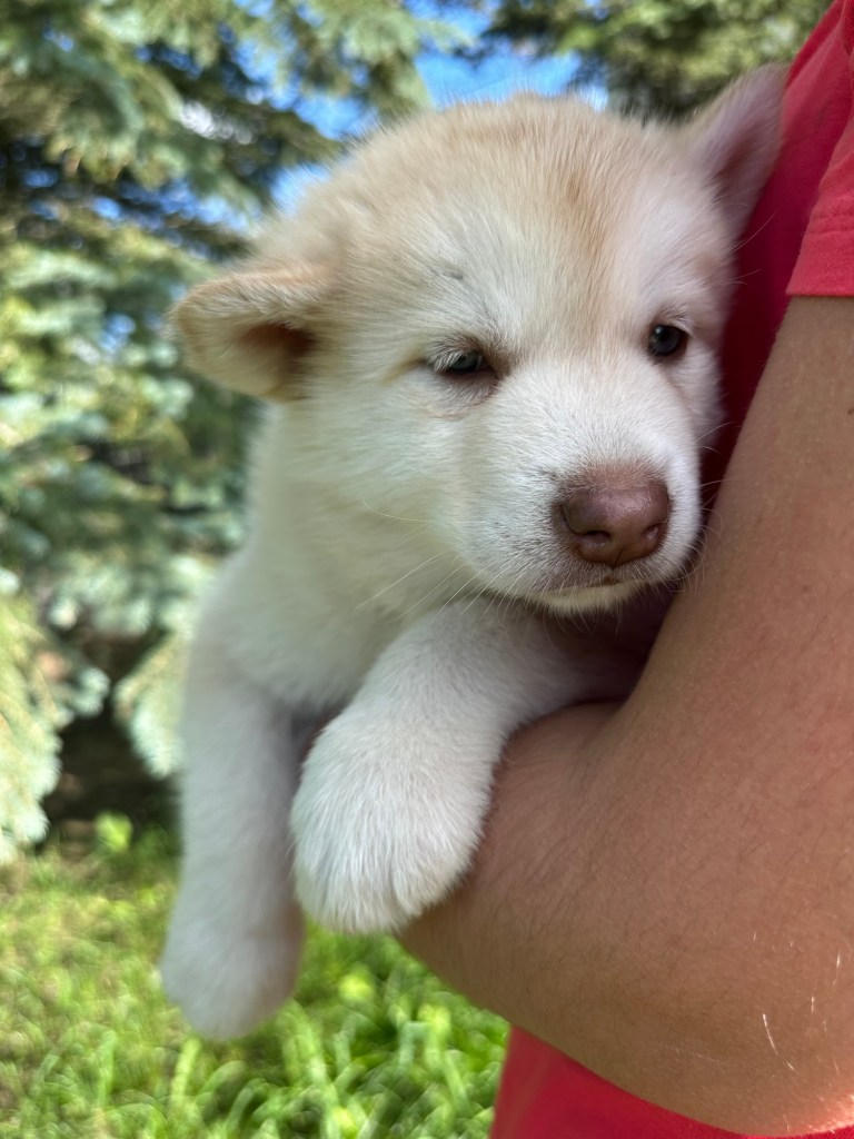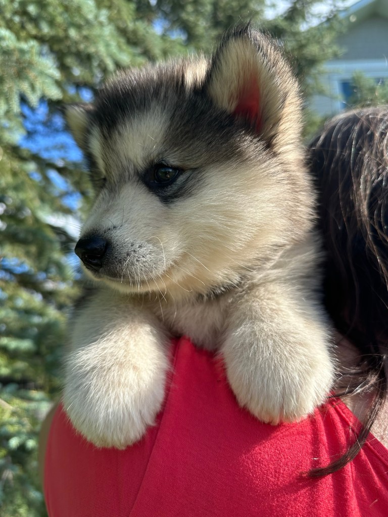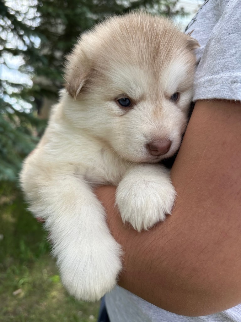 It’s been quite wet and rainy in Calgary so our latest batch of growth photos was slightly delayed. Our Alaskan Malamute puppies are now 5.5 weeks old, and they’re full of life! At this stage, they’re becoming more independent, engaging in play, exploring their environment, and interacting more with people. Their unique personalities are really shining through and they are so much fun to watch and play with! With one selection still pending there are only two puppies remaining from this litter. If you’d like to bring one home contact us today!