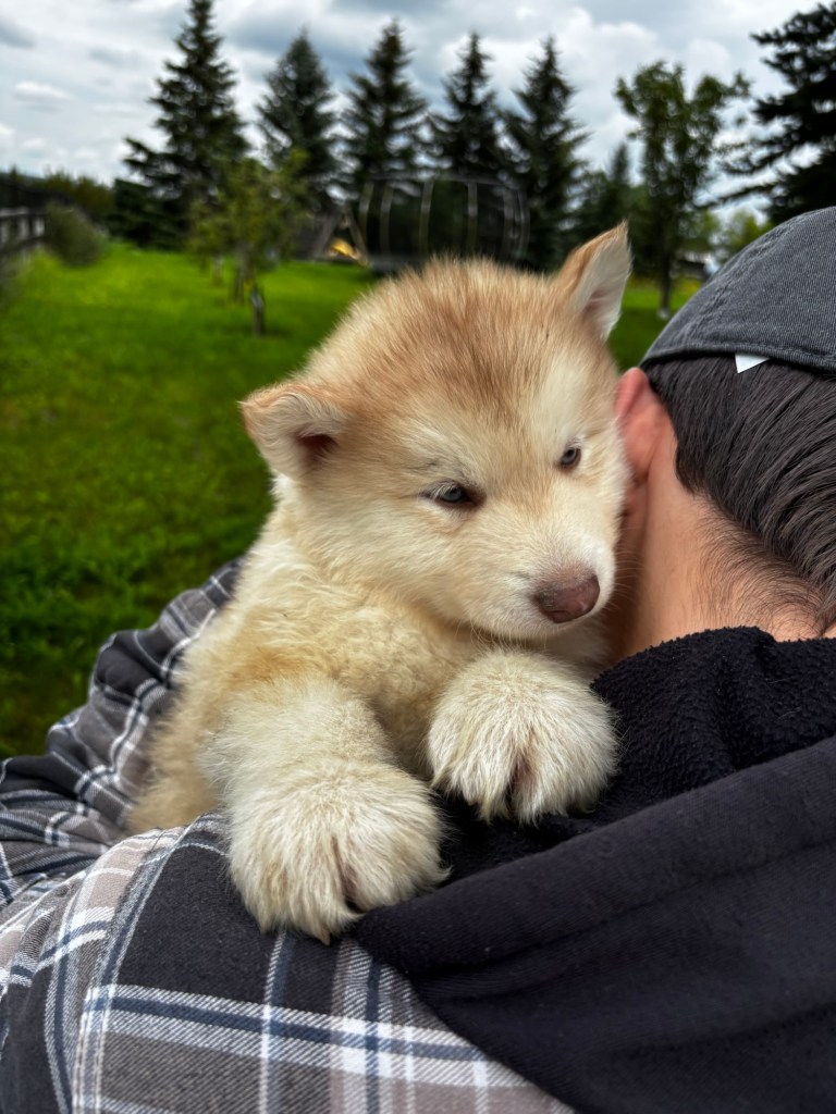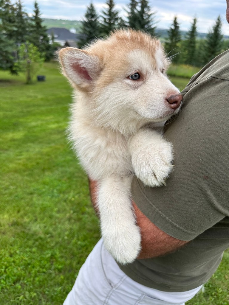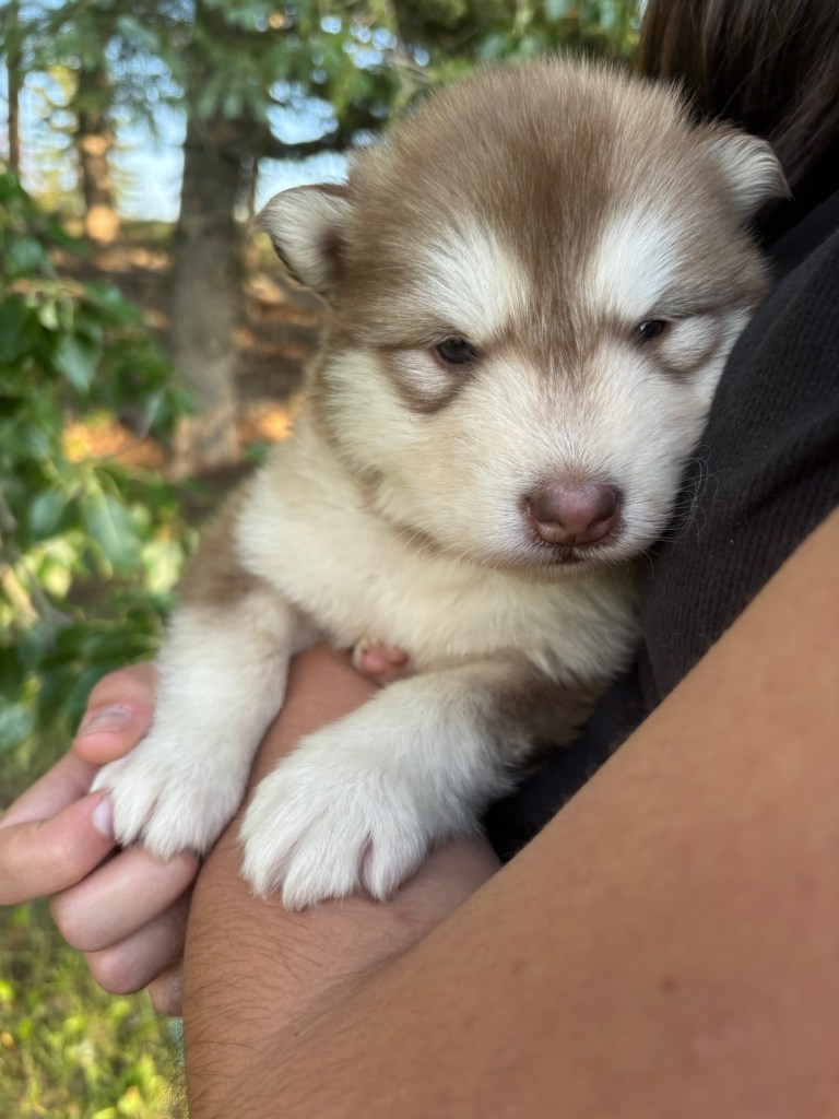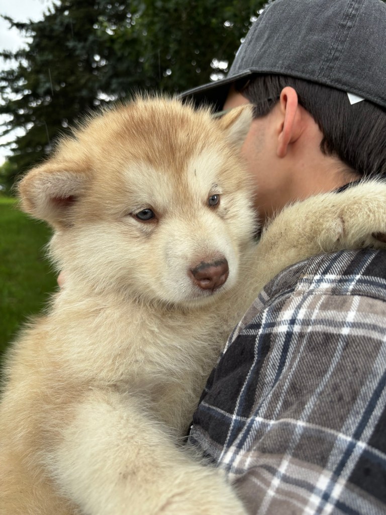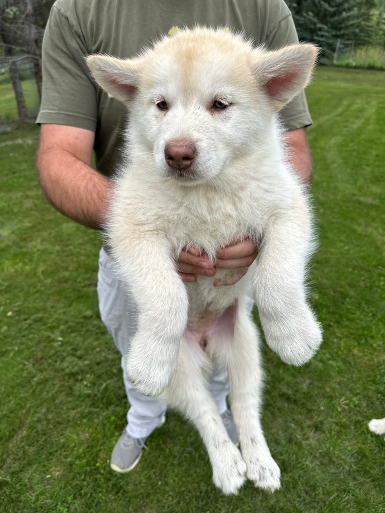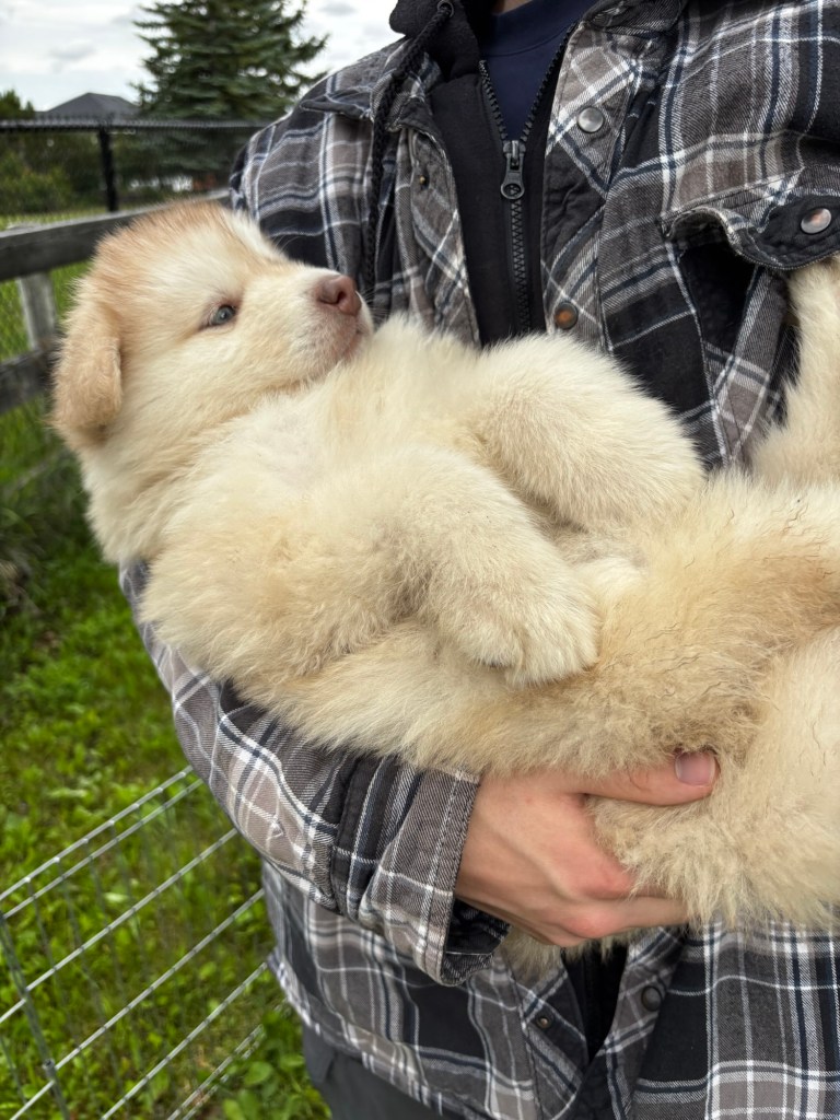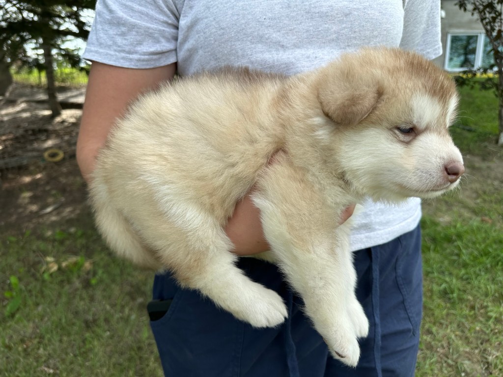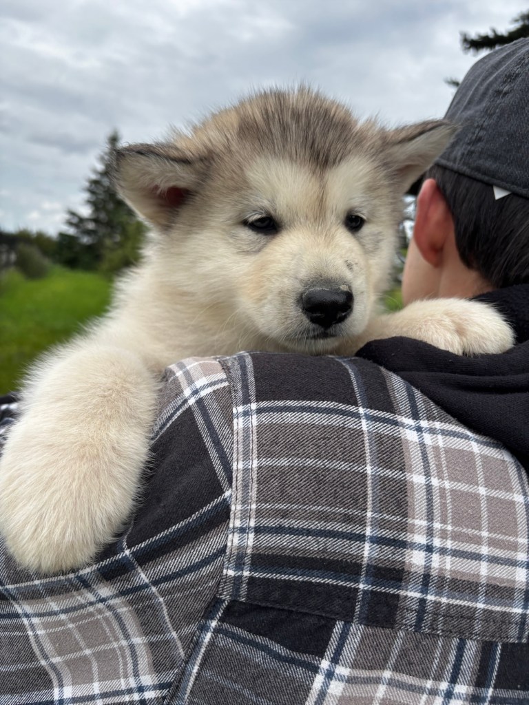 It’s been quite wet and rainy in Calgary so our latest batch of growth photos was slightly delayed. Our Alaskan Malamute puppies are now 5.5 weeks old, and they’re full of life! At this stage, they’re becoming more independent, engaging in play, exploring their environment, and interacting more with people. Their unique personalities are really shining through and they are so much fun to watch and play with! With one selection still pending there are only two puppies remaining from this litter. If you’d like to bring one home contact us today!