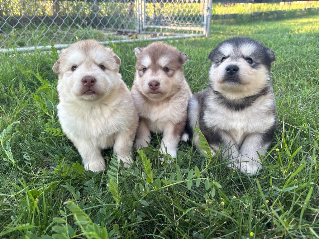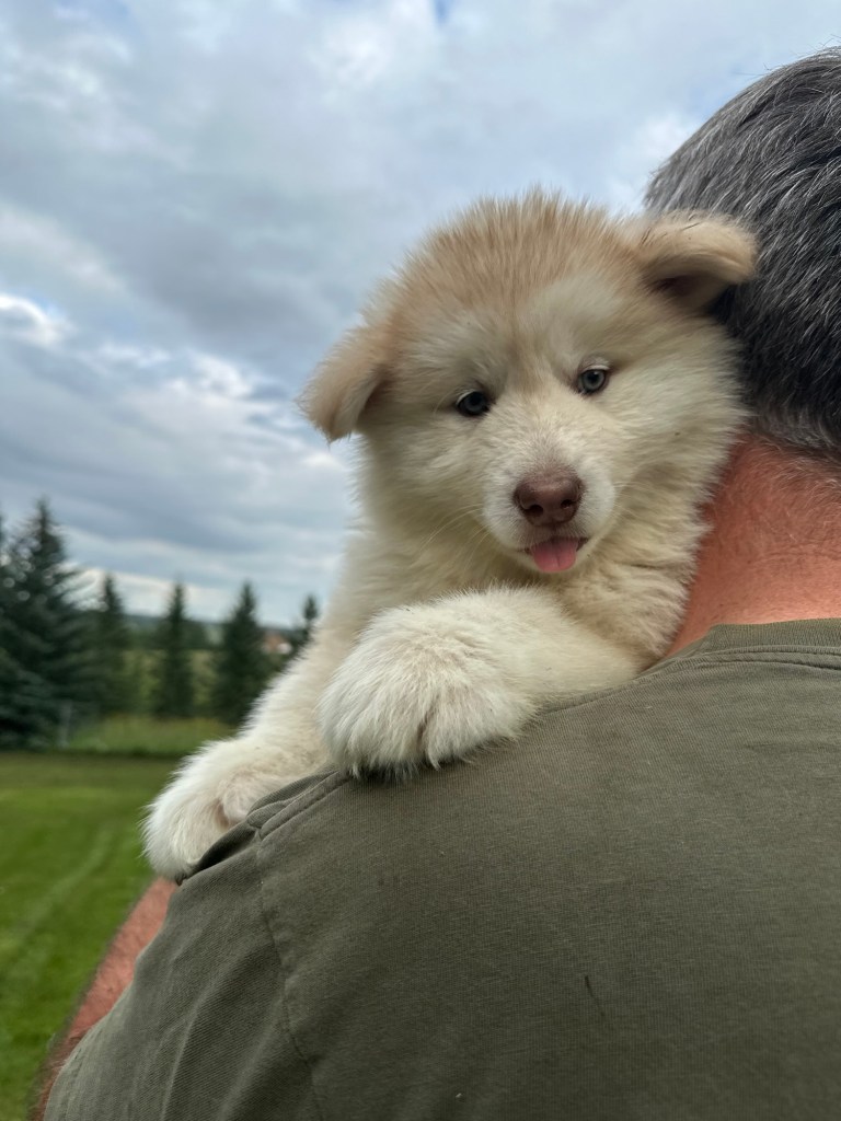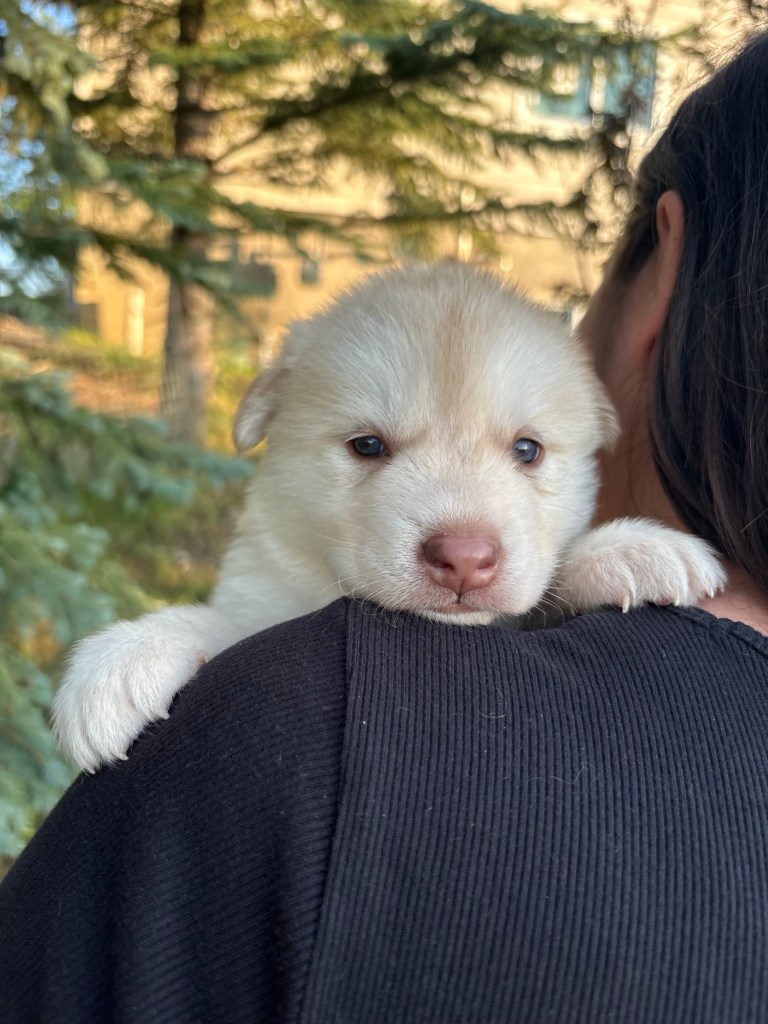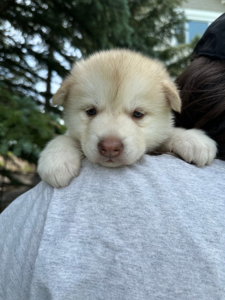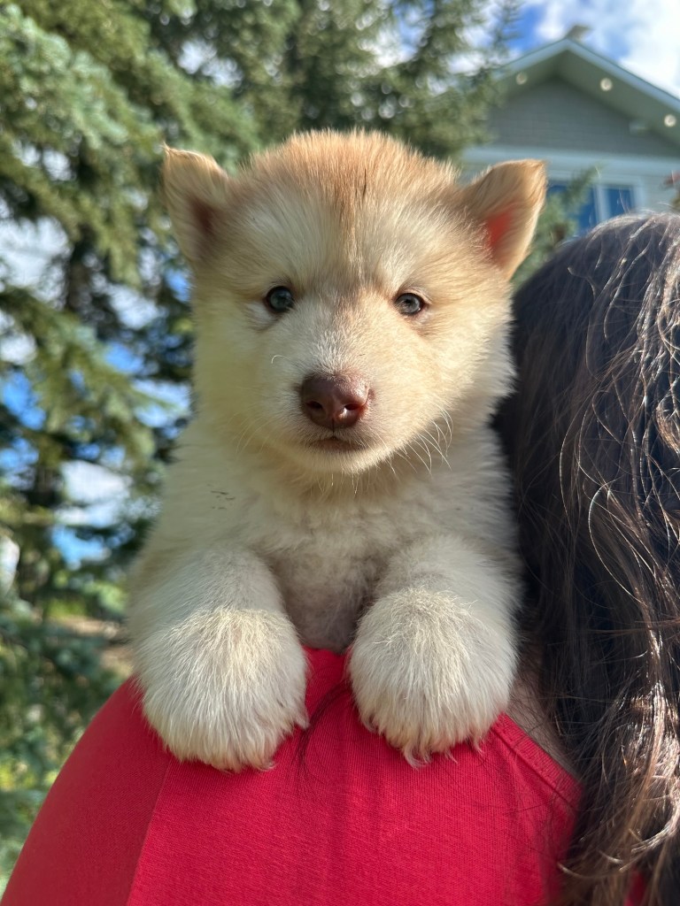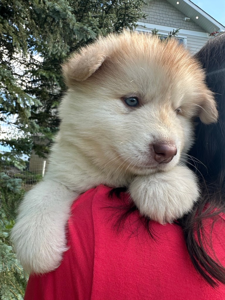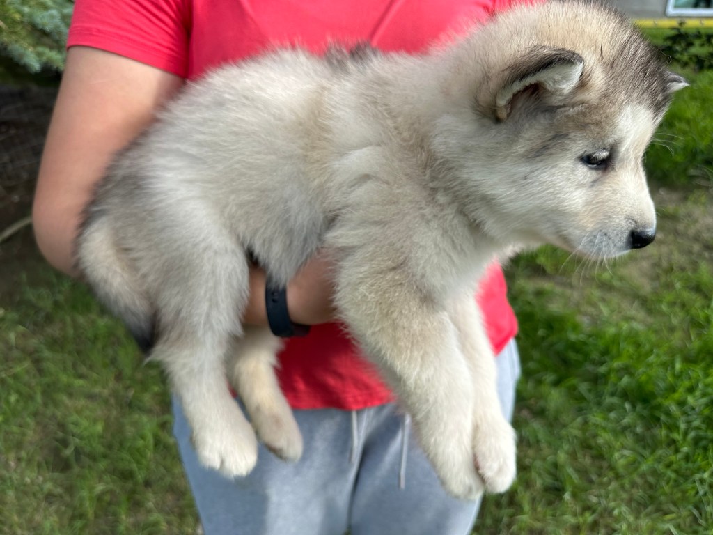 It’s been quite wet and rainy in Calgary so our latest batch of growth photos was slightly delayed. Our Alaskan Malamute puppies are now 5.5 weeks old, and they’re full of life! At this stage, they’re becoming more independent, engaging in play, exploring their environment, and interacting more with people. Their unique personalities are really shining through and they are so much fun to watch and play with! With one selection still pending there are only two puppies remaining from this litter. If you’d like to bring one home contact us today!