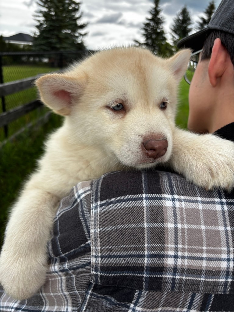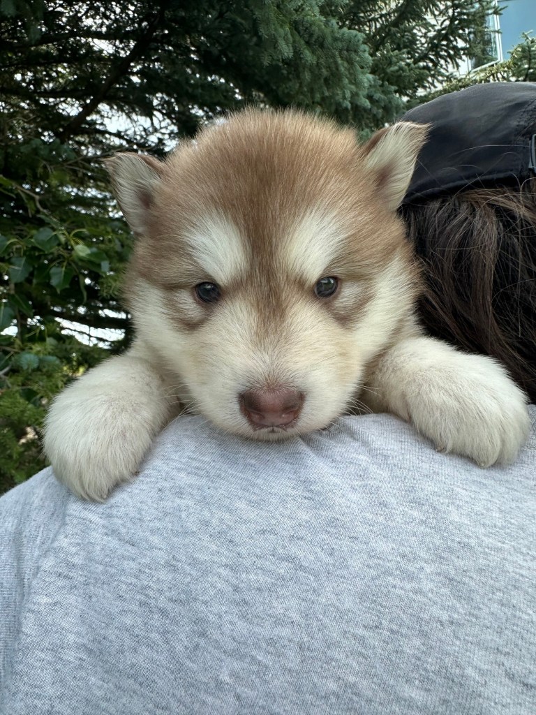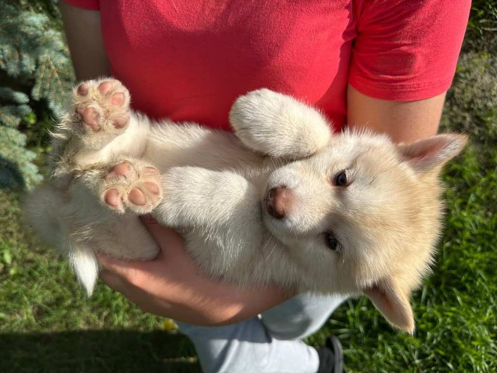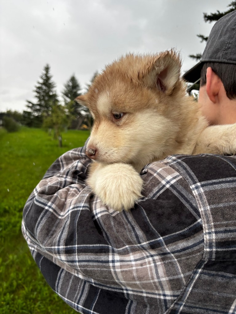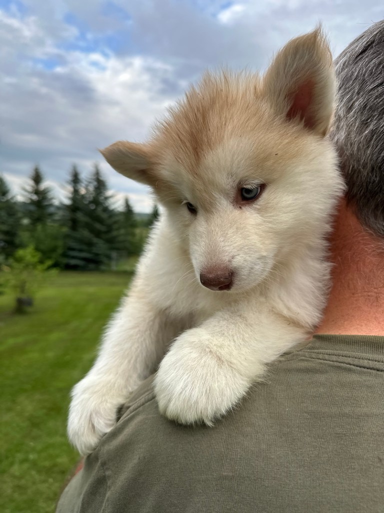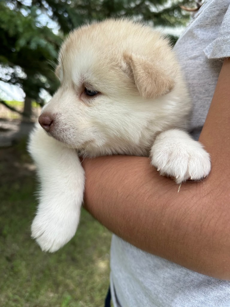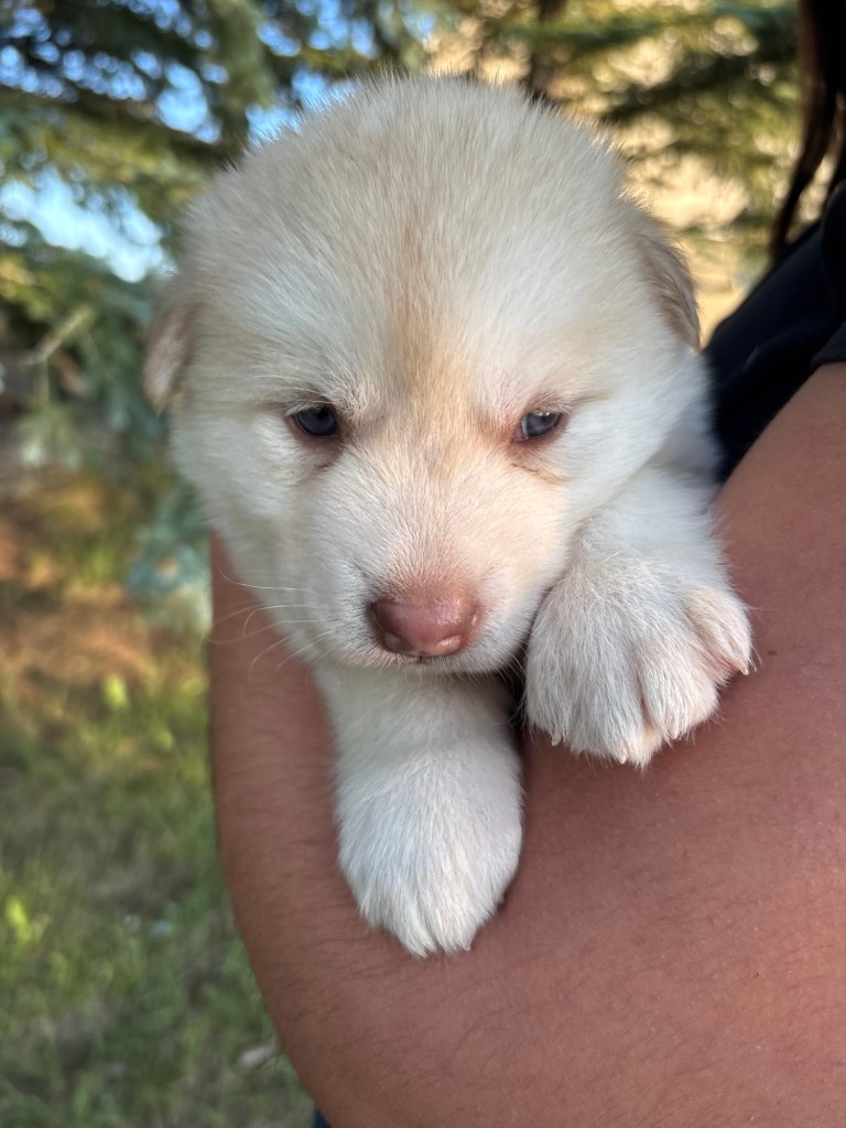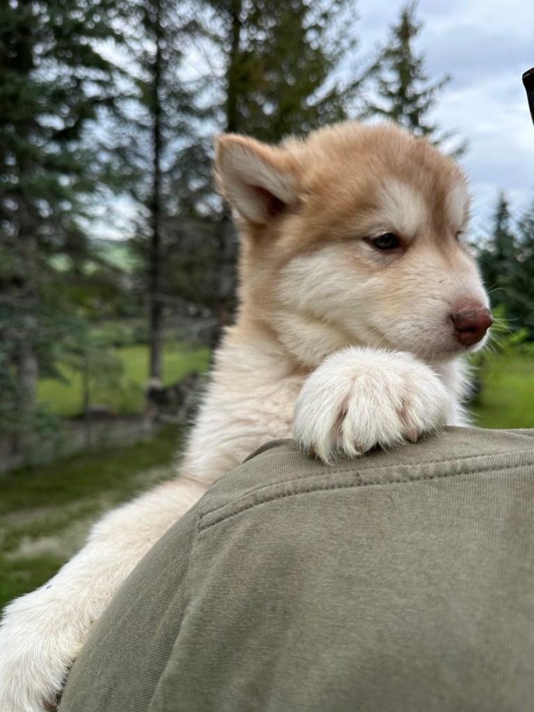 It’s been quite wet and rainy in Calgary so our latest batch of growth photos was slightly delayed. Our Alaskan Malamute puppies are now 5.5 weeks old, and they’re full of life! At this stage, they’re becoming more independent, engaging in play, exploring their environment, and interacting more with people. Their unique personalities are really shining through and they are so much fun to watch and play with! With one selection still pending there are only two puppies remaining from this litter. If you’d like to bring one home contact us today!